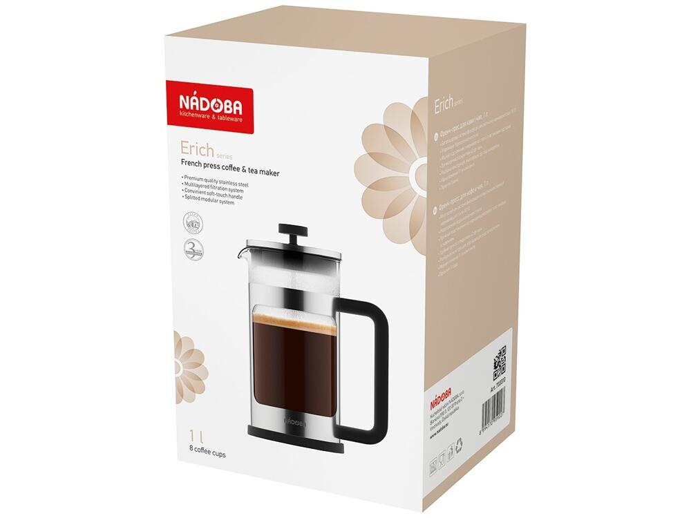 Френч-прессы серии Erich имеют колбу, выполненную из жаропрочного боросиликатного стекла. Прочный подстаканник из нержавеющей стали с пластиковой подставкой обеспечивает дополнительную термоизоляцию и предохраняет колбу от повреждений. Многослойная система фильтрации френч-прессов выполнена из высококачественной нержавеющей стали 18/10. Удобная ручка с покрытием "Софт-тач" не нагревается и не выскальзывает из рук. Разборная конструкция изделий и системы фильтрации облегчают легкий и качественный уход. В комплекте предусмотрена мерная ложка 7г для точной дозировки продуктов. В серию входят френч-прессы объёмом 1, 0,6 и 0,35 л. Гарантия на френч-прессы серии Erich 3 года.