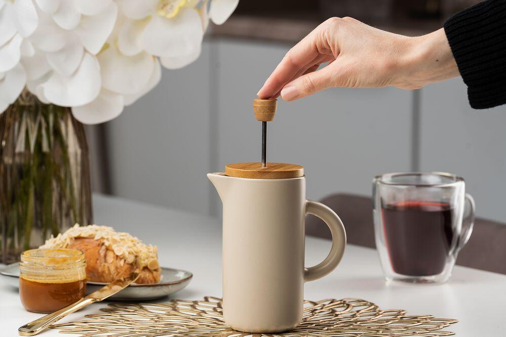 Френч-пресс Keramikk выполнен из керамики, благодаря чему он хорошо сохраняет температуру напитка, не обжигает руки и прост в уходе. Контраст бамбуковой крышки и керамики выглядит действительно интересно и необычно.Емкость 350 мл. Поставляется в индивидуальной упаковке.