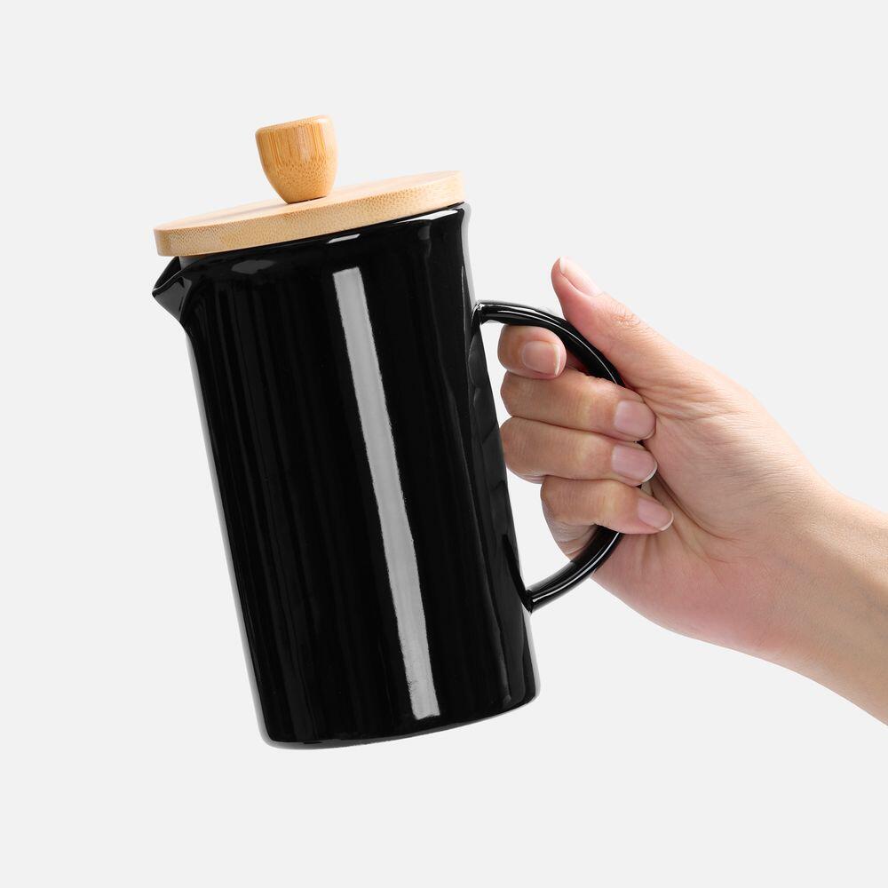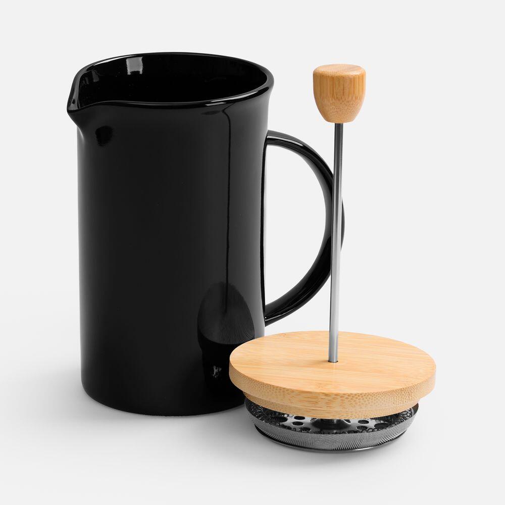 Элегантный керамический френч-пресс Mezzo в глянцевом черном исполнении — функциональный кухонный аксессуар и украшение любого пространства, от уютной домашней кухни до стильного офиса.Емкость 600 мл. Элементы из бамбука не подходят для мытья в посудомоечной машине.
