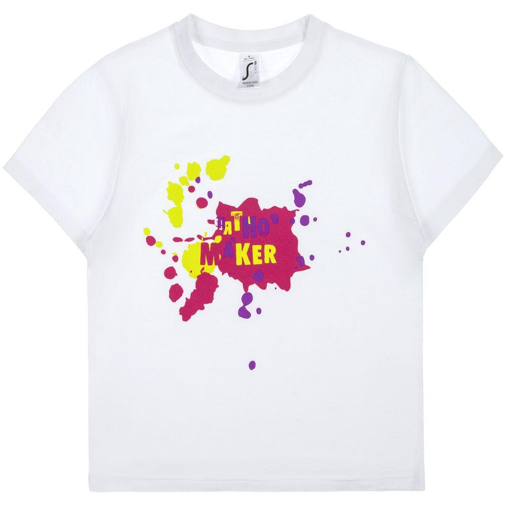 Классическая футболка с боковыми швами (4 года) или без боковых швов (с 6 лет), с укрепляющей тесьмой по вороту. Край ворота в резинку с эластаном. Двойная прострочка по низу, на рукавах и на вороте спереди.