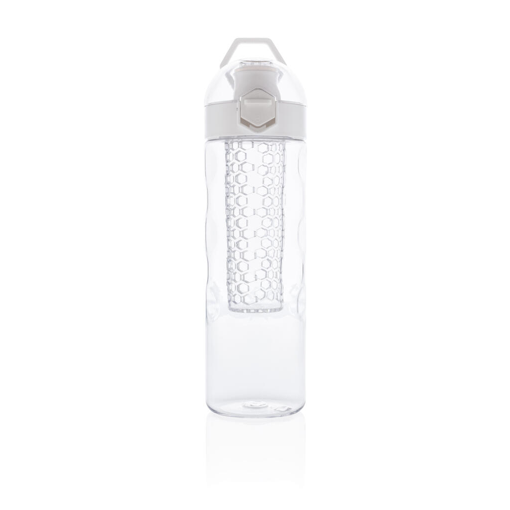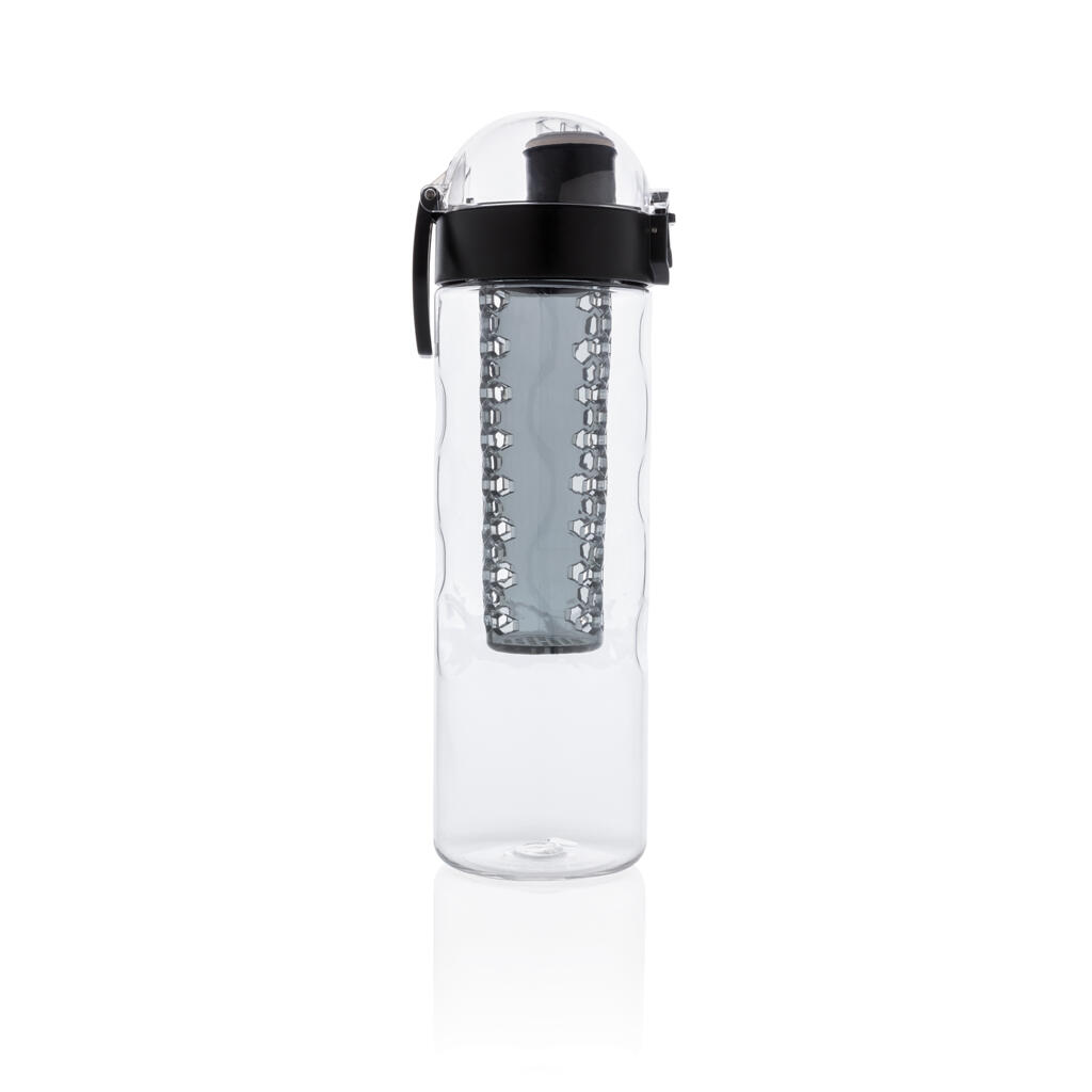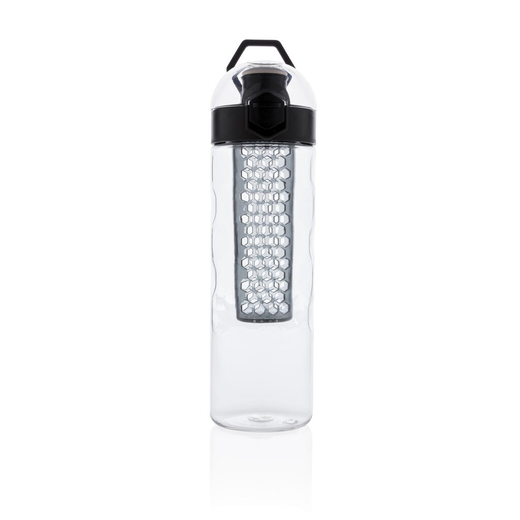 Пейте еще более вкусную и полезную воду, добавив в нее фрукты! Когда вы пьете из этой стильной бутылки, одна ваша рука остается свободной. Крышка открывается легким нажатием на кнопку, на которой предусмотрен специальный механизм блокировки, исключающий случайное нажатие. На бутылке предусмотрена удобная ручка для переноски. Эта бутылка с контейнером для фруктов изготовлена из прочного инновационного материала Tritan, который не впитывает запахи и не содержит BPA. Объем 700мл. Зарегистрированный дизайн®