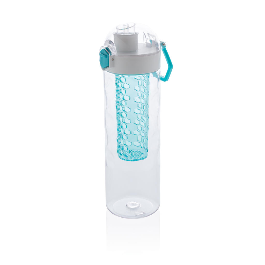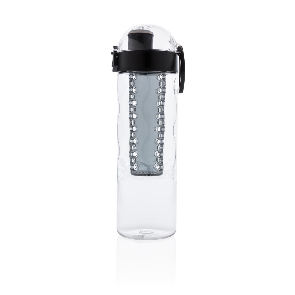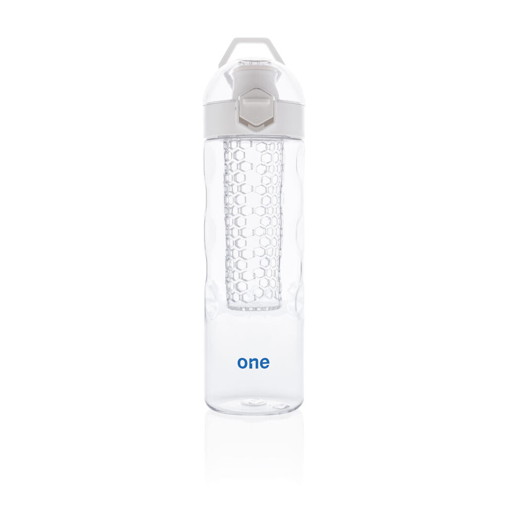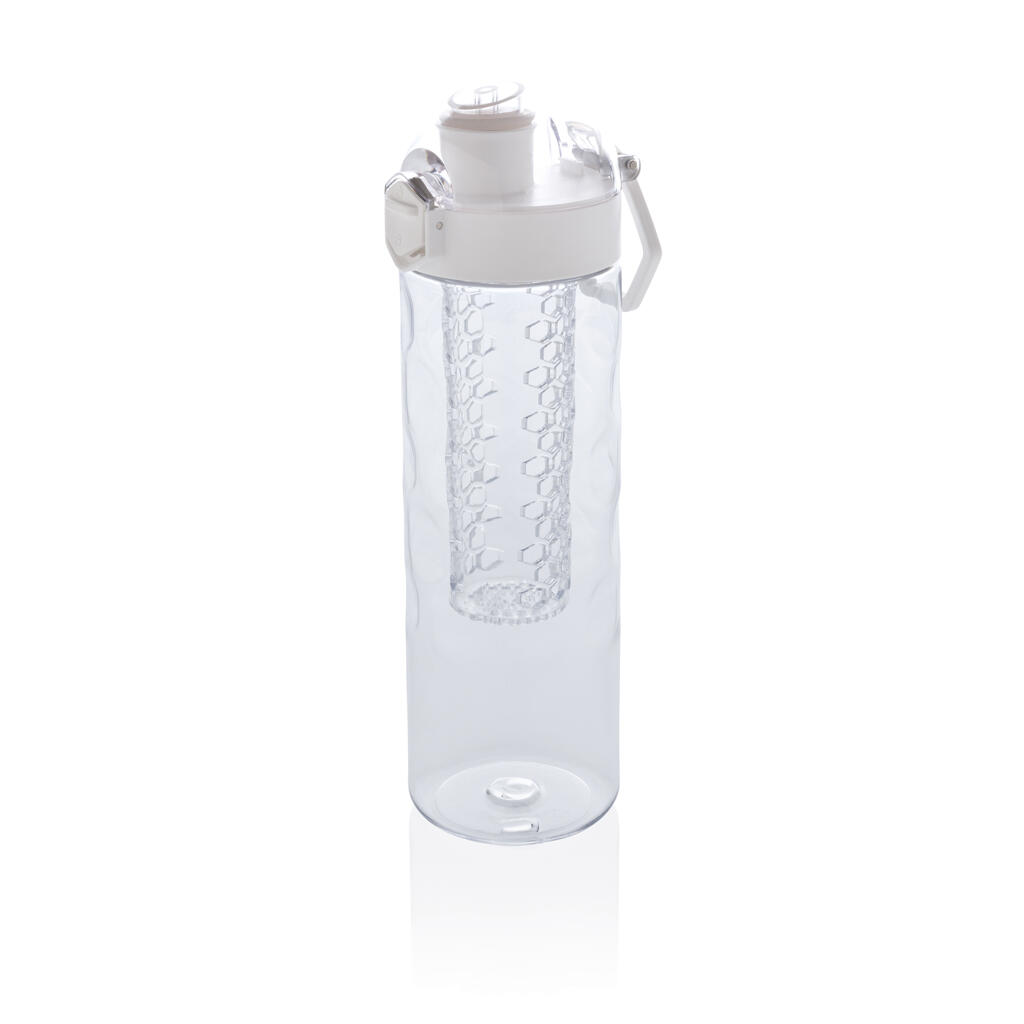 Пейте еще более вкусную и полезную воду, добавив в нее фрукты! Когда вы пьете из этой стильной бутылки, одна ваша рука остается свободной. Крышка открывается легким нажатием на кнопку, на которой предусмотрен специальный механизм блокировки, исключающий случайное нажатие. На бутылке предусмотрена удобная ручка для переноски. Эта бутылка с контейнером для фруктов изготовлена из прочного инновационного материала Tritan, который не впитывает запахи и не содержит BPA. Объем 700мл. Зарегистрированный дизайн®