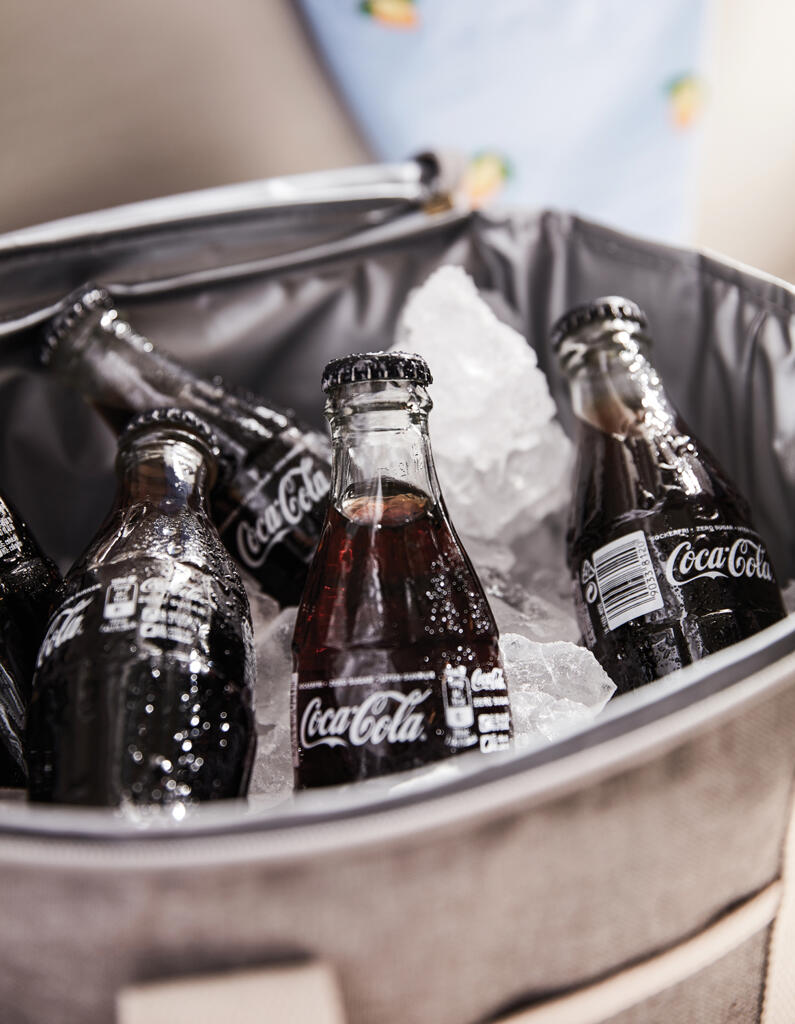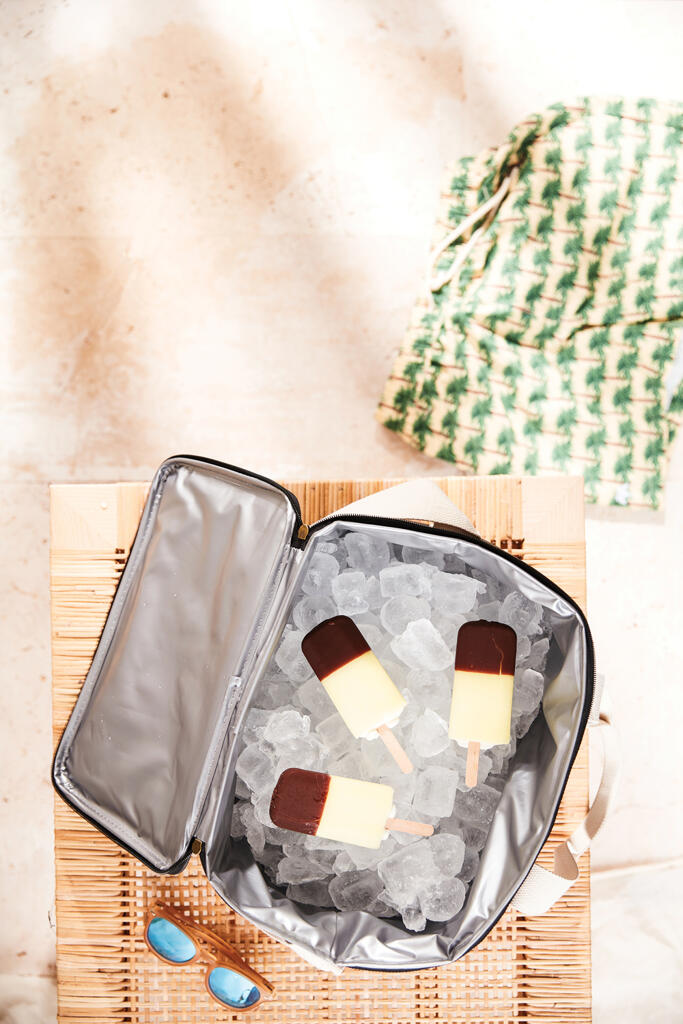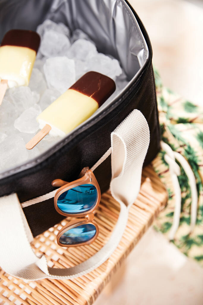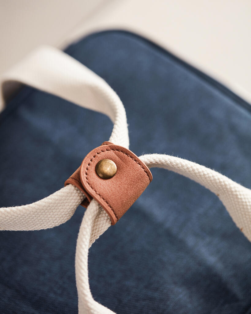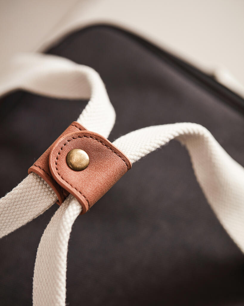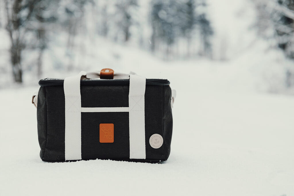 Это универсальная сумка-холодильник с контрастными деталями на 50% изготовлена из rPET, переработанных пластиковых бутылок. Снаружи есть небольшое отделение для важных мелочей. Благодаря плотному подкладу из PEVA сумка легко моется и долго сохраняет холод. Есть регулируемый плечевой ремень и короткие ручки.