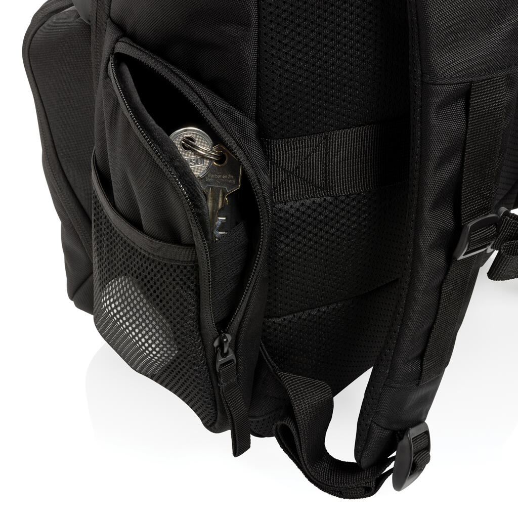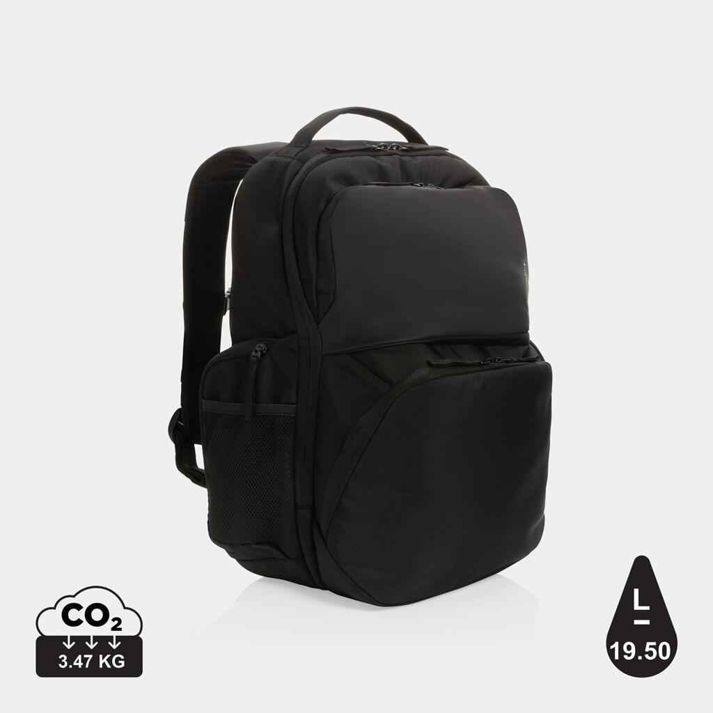 Универсальный рюкзак для современного жителя мегаполиса. Продуманная организация пространства благодаря двум дополнительным отделениям на молниях и вместительному основному пространству с отсеком для ноутбука диагональю до 15,6". Есть сетчатые карманы для бутылок с водой. Рюкзак выполнен из материала rPET с маркировкой AWARE™, подтверждающей подлинность переработанных материалов. При производстве этого рюкзака мы сэкономили 19,5 л воды и переработали 32,8 пластиковые бутылки объемом 0,5 л. 2% с продаж каждого изделия будут переданы в фонд Water.org. Не содержит ПВХ.