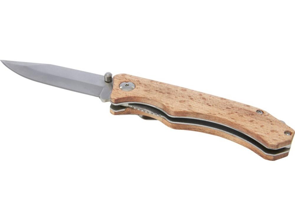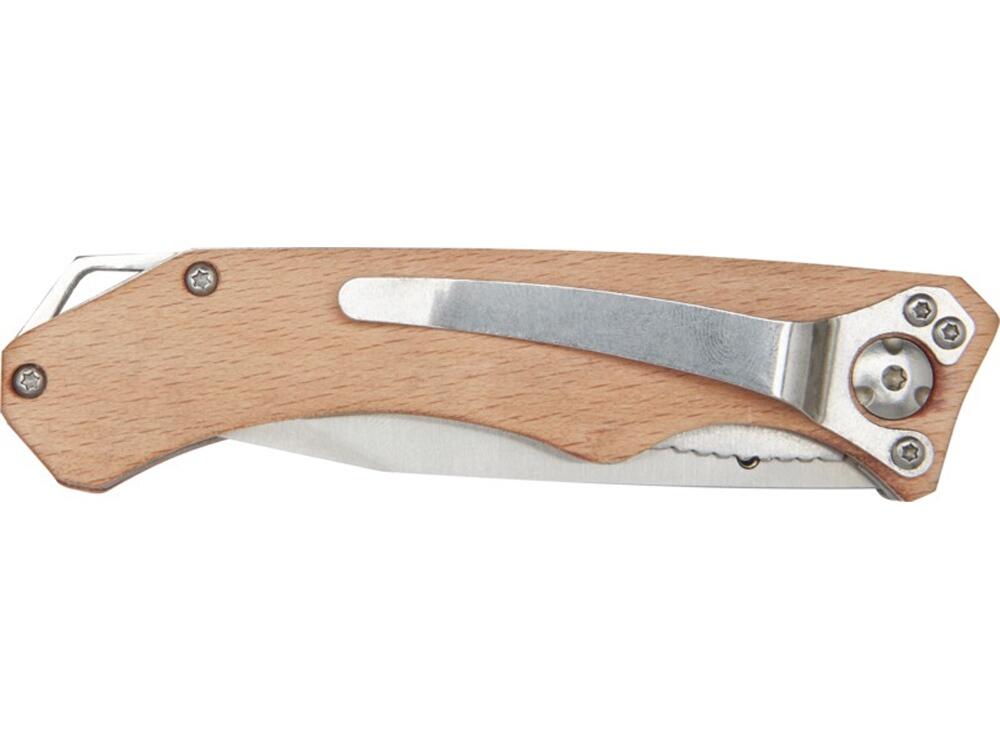Прочный, надежный и компактный карманный нож из качественной нержавеющей стали с ручками из буковой древесины. Обязательный аксессуар для любого скаута, мастера и других любителей выживания или активного отдыха. Используемая буковая древесина поступает от надежных поставщиков, соблюдающих все экологические и социальные нормы. Нож поставляется с предохранительным замком и зажимом для ремня, размер в открытом состоянии составляет 19 x 2 x 2,5 см, а в закрытом — 11 x 2 x 2,5 см. Поставляется с инструкцией по эксплуатации и в подарочной коробке из переработанного картона размером 14 x 4 x 3,5 см. В качестве экологически рационального варианта печати рекомендуется лазерная гравировка.