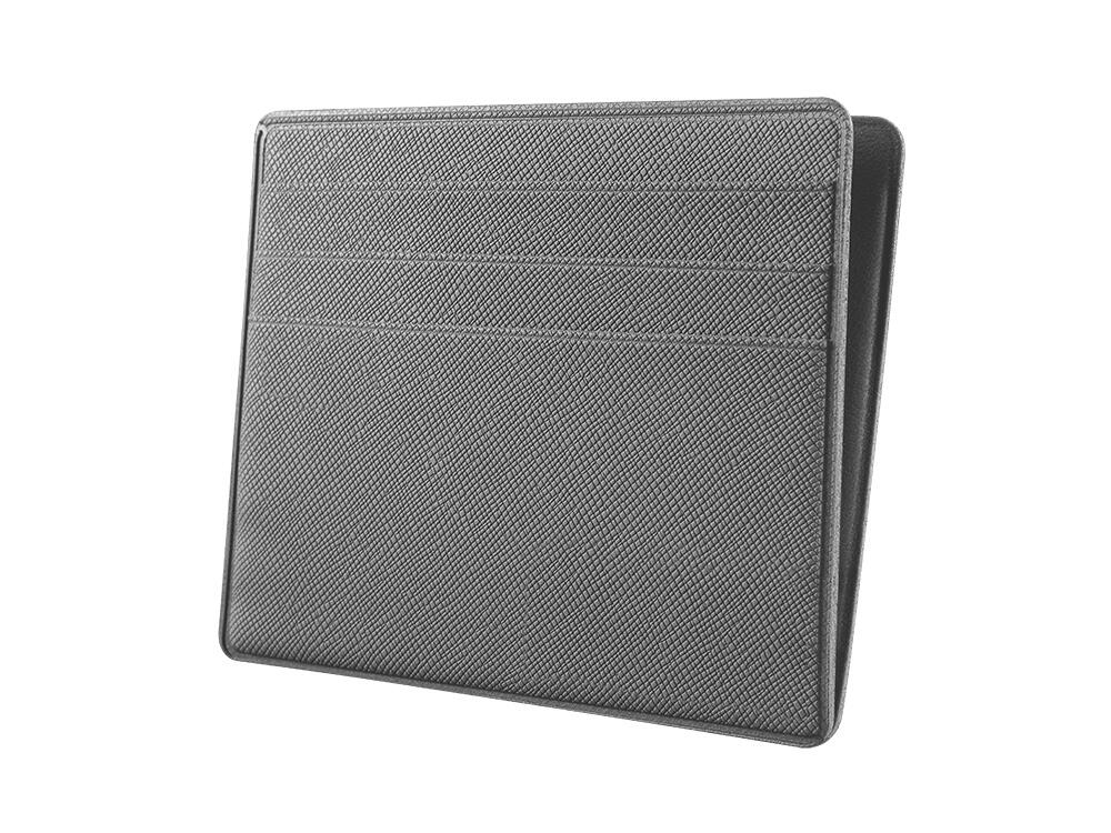Благодаря текстурной экокоже картхолдер выглядит строго и минималистично. На такой поверхности очень выгодно смотрится брендирование тиснением.