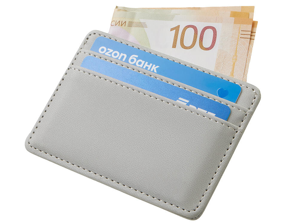 Картхолдер вмещает две карты и имеет отделение для купюр.