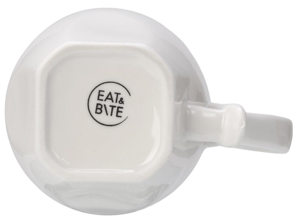 Кофейная пара от бренда Eat&Bite смотрится эстетично и красиво из-за нестандартного дизайна - фигурной ручки чашки и квадратного донышка, которое точно подходит под выемку блюдца.