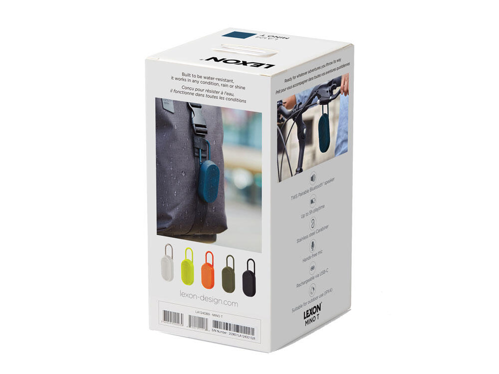 Mino T — это универсальная Bluetooth-колонка, созданная для путешествий. Карабин позволяет легко прикрепить её к сумке или велосипеду. Благодаря элегантному дизайну она гармонично впишется в интерьер, став современным элементом. Оснащённая пассивной басовой системой, Mino T обеспечивает качественное прослушивание, гарантируя сбалансированный и насыщенный звук в дороге. Не беспокойтесь о дожде: сверхпрочное покрытие делает её водонепроницаемой. Наслаждайтесь до 5 часов автономной работы в любых приключениях. Отвечайте на звонки, слушайте музыку или заряжайте колонку через кабель USB-C, установив её на док-станцию.