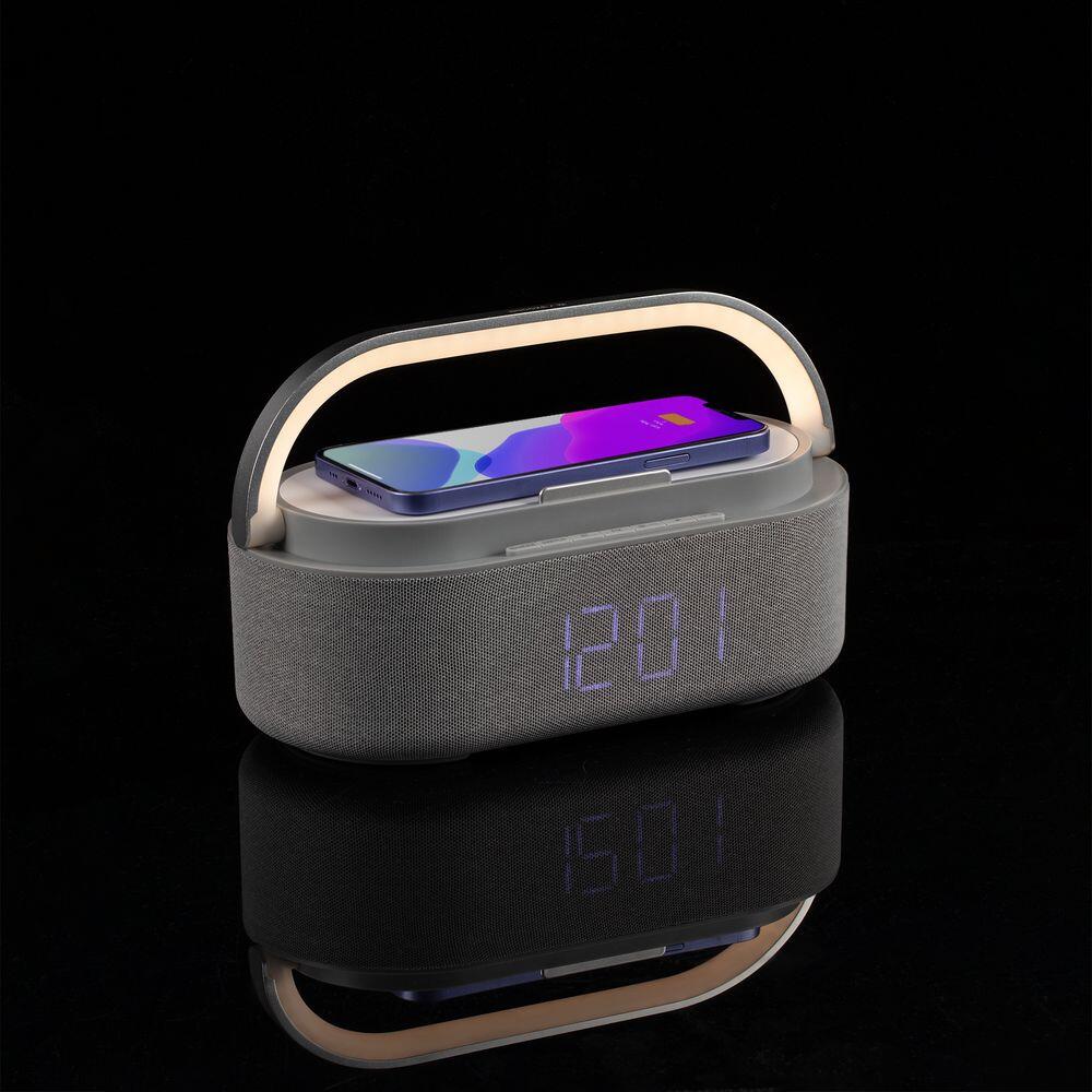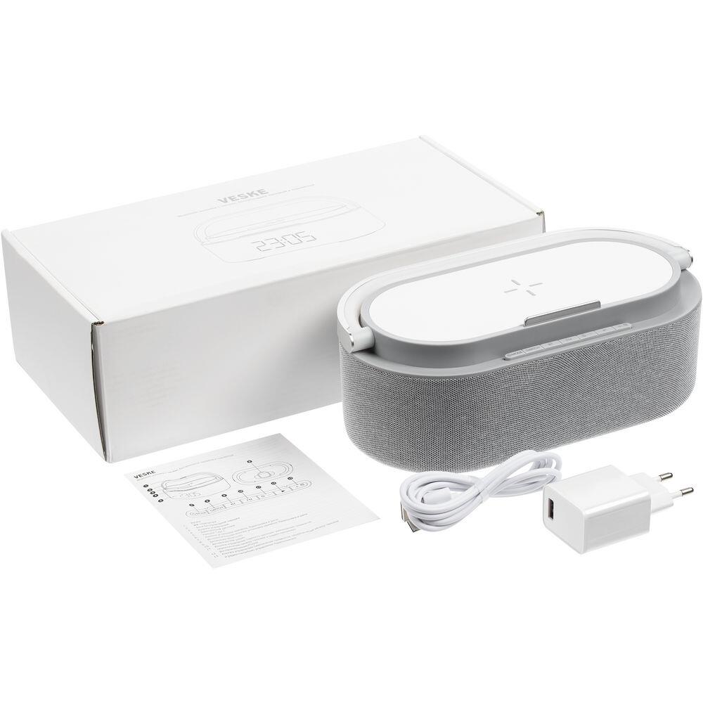 Колонка с часами и беспроводной зарядкой Veske ver.2, серая