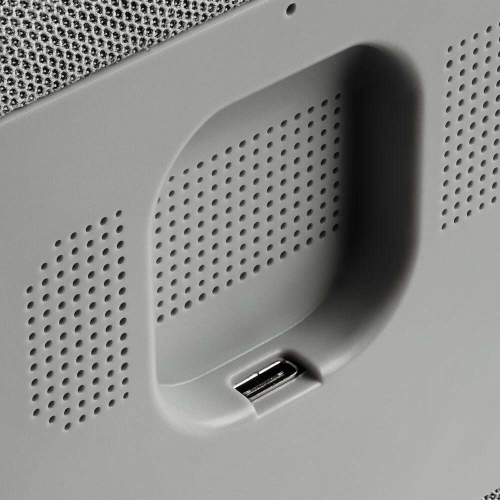 Два динамика мощностью 5 Вт позволяют наполнить звуком помещение площадью до 30 м². Емкая встроенная батарея позволяет использовать колонку и лампу без привязки к розетке.