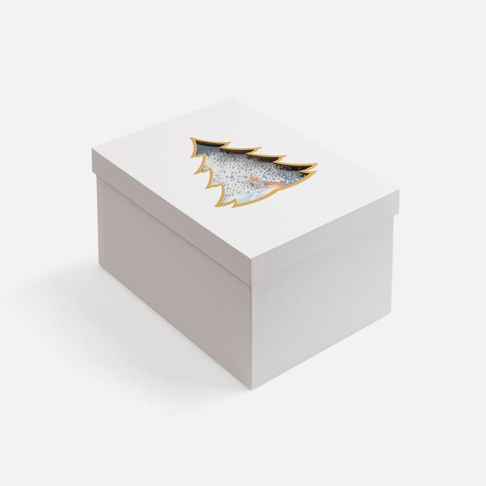 Оригинальный дизайн с нежными рисунками превращает даже обычную коробку в источник новогоднего настроения. Практичная и стильная, коробка Christmas Tree идеально подойдет для упаковки подарков, хранения праздничных украшений и создания сказачной атмосферы в доме. Коробка из переплетного картона, кашированного белой дизайнерской бумагой. Толщина картона 2 мм. Выдерживает вес до 4 кг.
