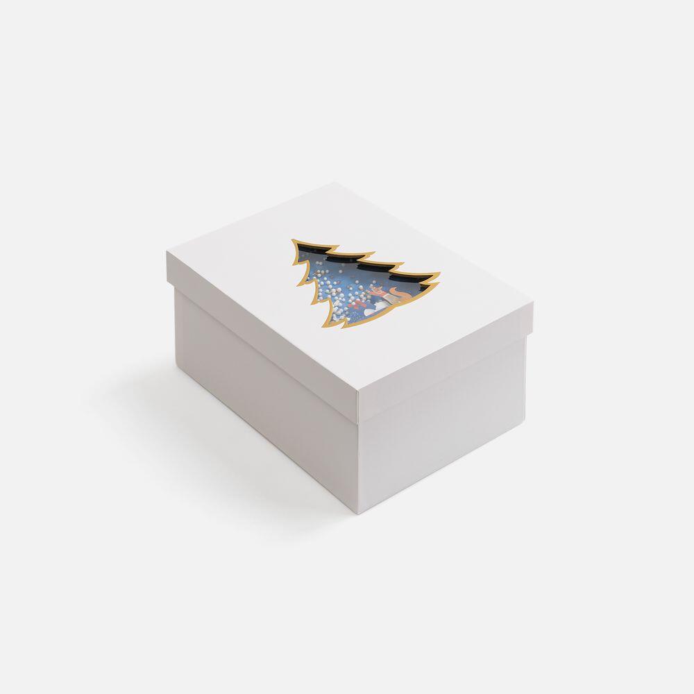 Оригинальный дизайн с нежными рисунками превращает даже обычную коробку в источник новогоднего настроения. Практичная и стильная, коробка Christmas Tree идеально подойдет для упаковки подарков, хранения праздничных украшений и создания сказочной атмосферы в доме. Коробка из переплетного картона, кашированного белой дизайнерской бумагой. Толщина картона 2 мм. Выдерживает вес до 3 кг.
