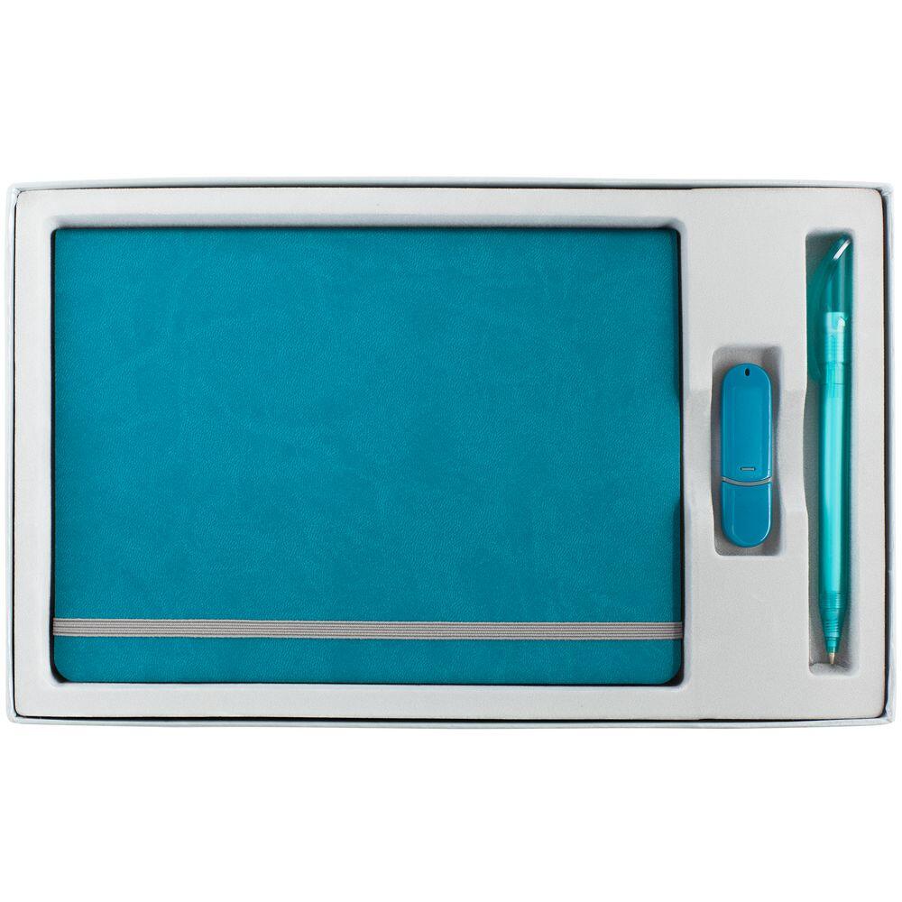 Подарочная упаковка для ежедневника 2,5х15х21 см, ручки 1,5х14,2 см и флешки 2х6,7 см. Коробка из переплетного картона, кашированного дизайнерской бумагой Malmero, с флокированным ложементом.