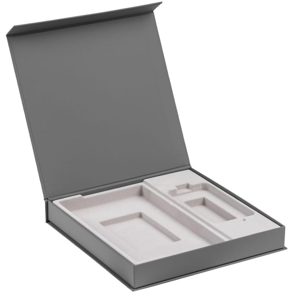 Коробка Modum с флокированным ложементом под ежедневник 13х21 см и аккумулятор, серая