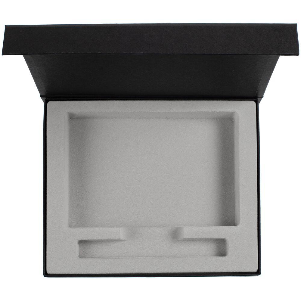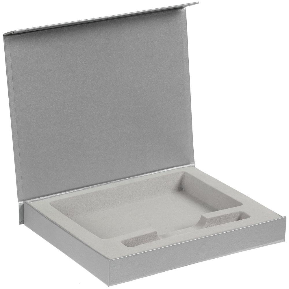 Коробка из переплетного картона, кашированного дизайнерской бумагой Galaxy Metallic, с крышкой на магните и флокированным ложементом.