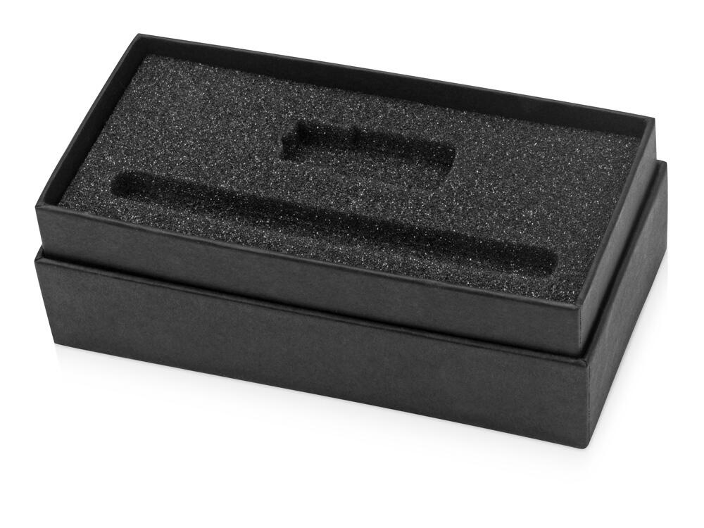 Коробка с ложементом для флешки и ручки. Коробка изготовлена из переплетного картона кашированного дизайнерской бумагой эфалин, ложемент изготовлен из поролона премиум-класса.