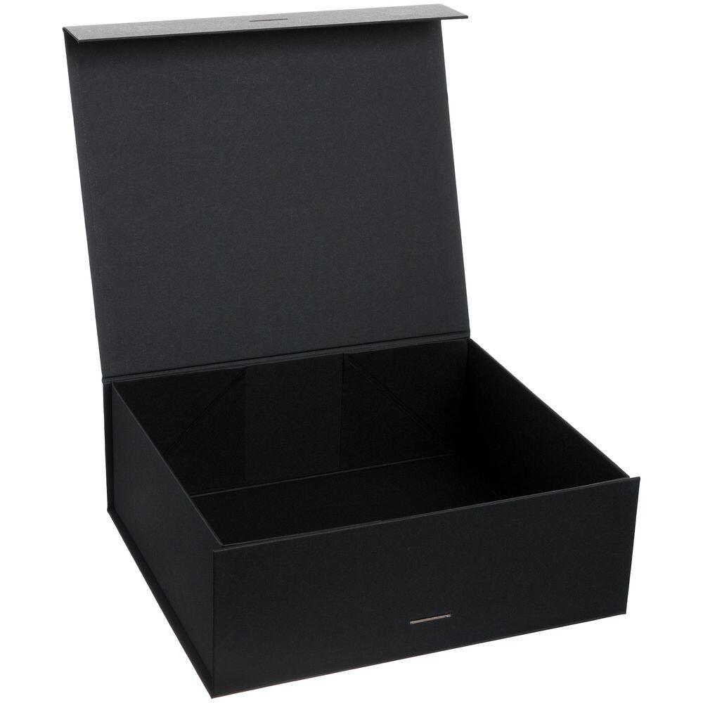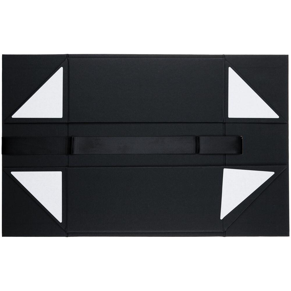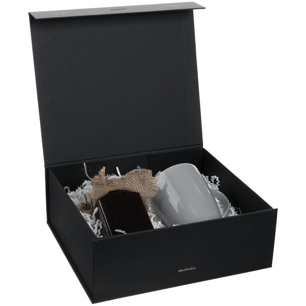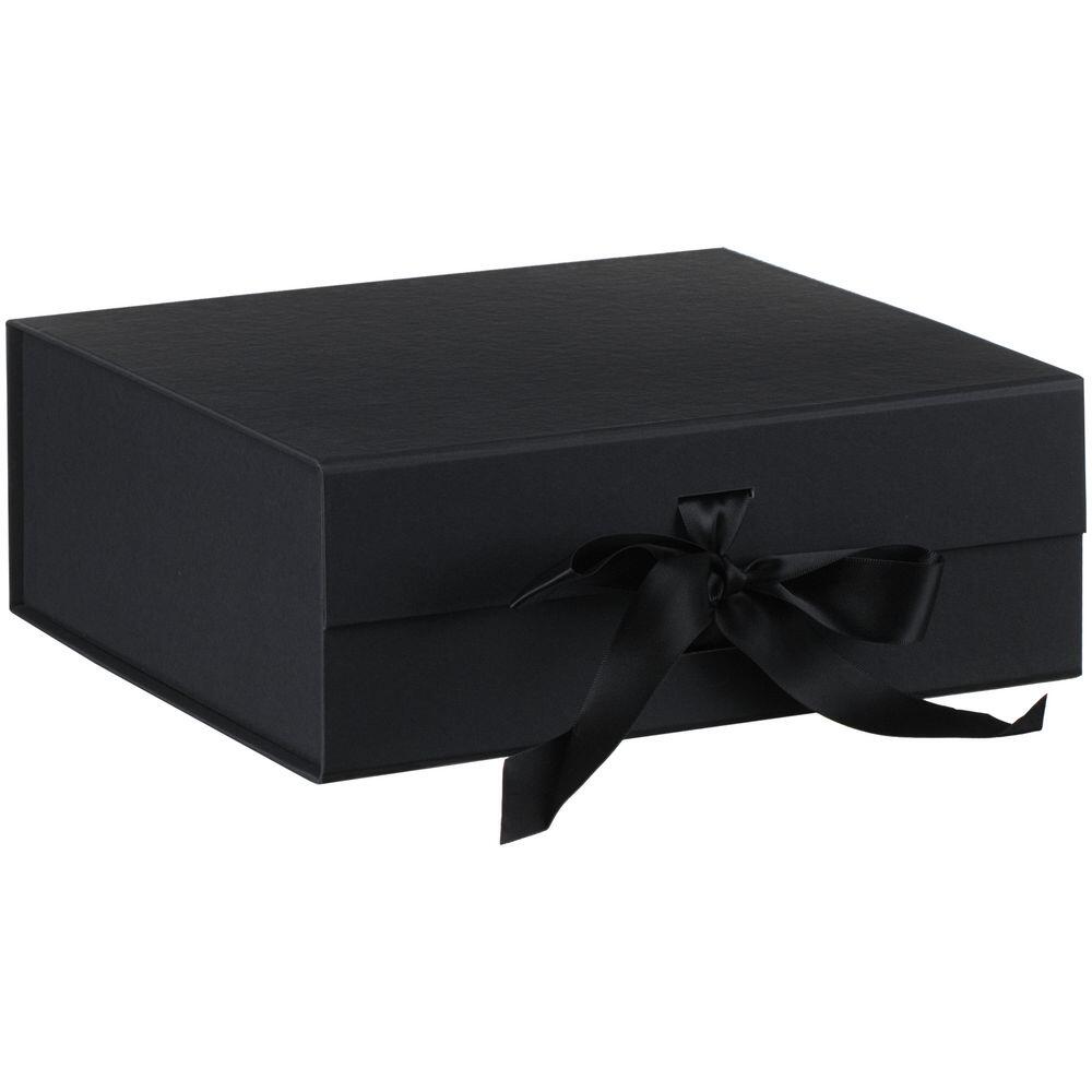 Коробка из переплетного картона, кашированного тонированной в массе крафтовой бумагой. Крышка на двух магнитах дополнительно фиксируется лентой.Толщина картона 2 мм. Длина ленты 80 см, ширина ленты 2,5 см. Поставляется в плоском виде. Сборка осуществляется на скотч.