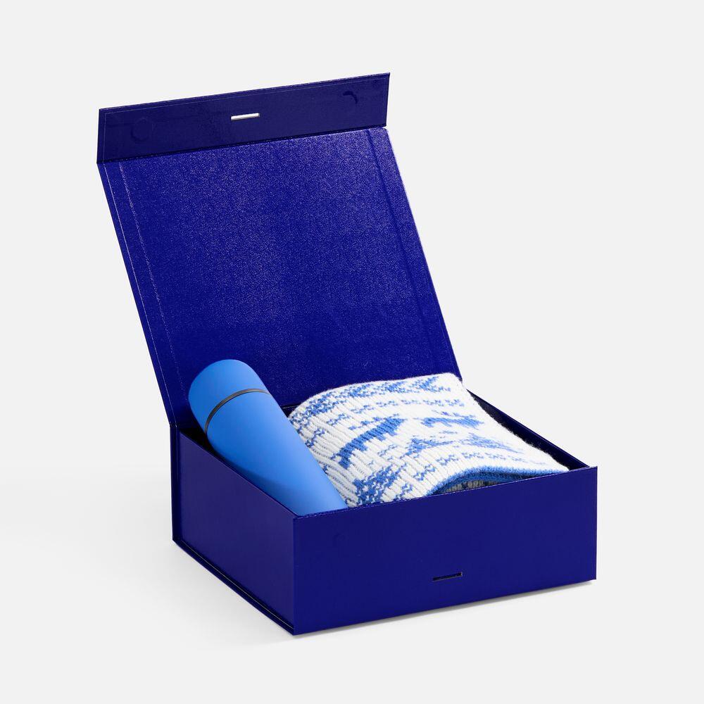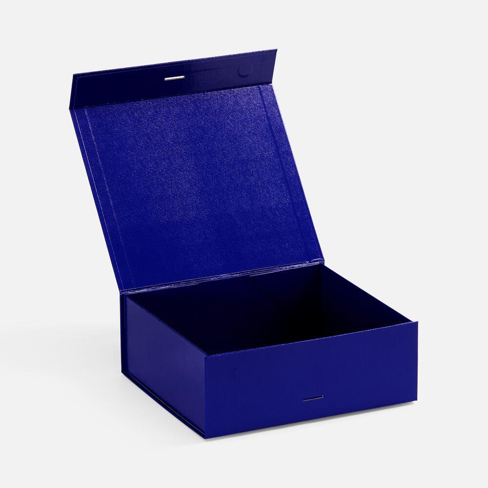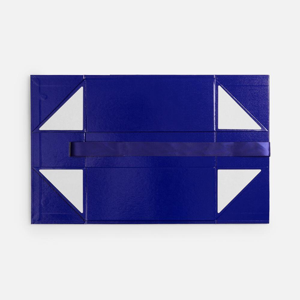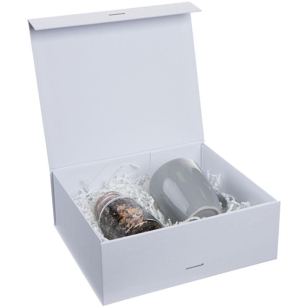 Коробка из переплетного картона, кашированного тонированной в массе крафтовой бумагой. Крышка на двух магнитах дополнительно фиксируется лентой.Толщина картона 2 мм. Длина ленты 80 см, ширина ленты 2,5 см. Поставляется в плоском виде. Сборка осуществляется на скотч.
