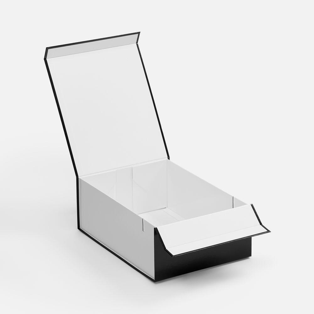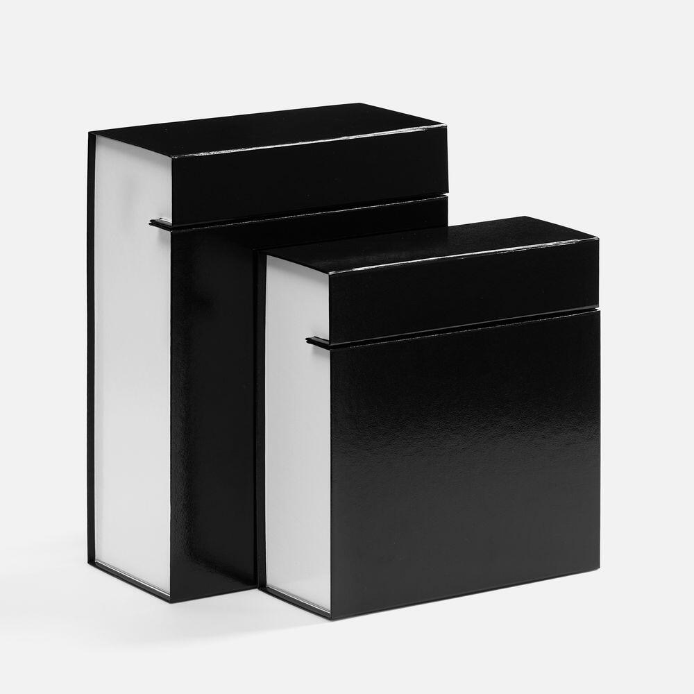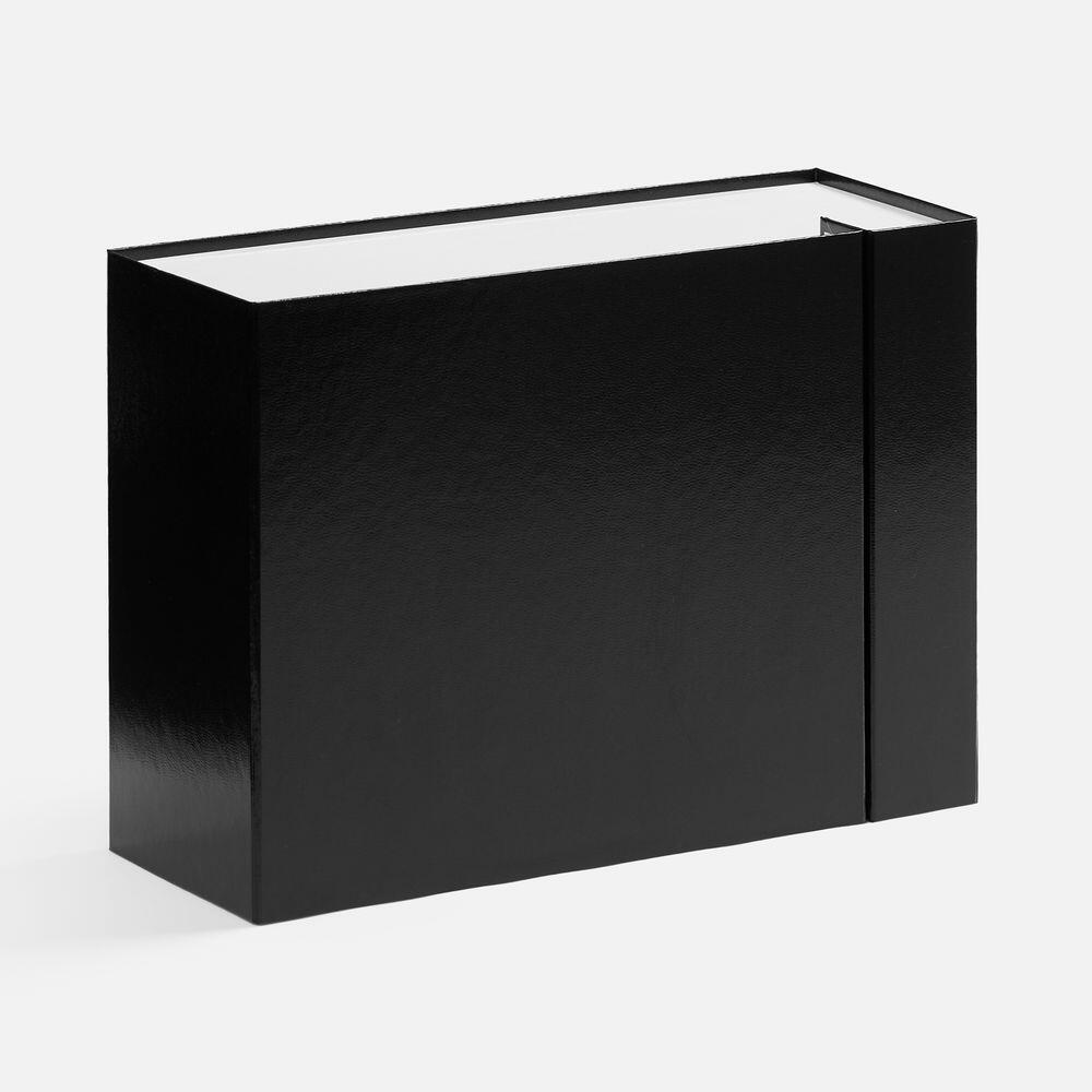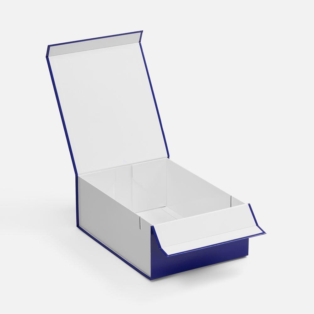 Плотная коробка из переплетного картона толщиной 2 мм с практичной конструкцией на двух створках. Складная система с уже нанесенным двусторонним скотчем позволяет быстро собрать коробку без дополнительных инструментов. Лайнер с полуглянцевым ламинированием устойчив к повреждениям и надолго сохраняет безупречный вид. Поставляется в плоском виде.