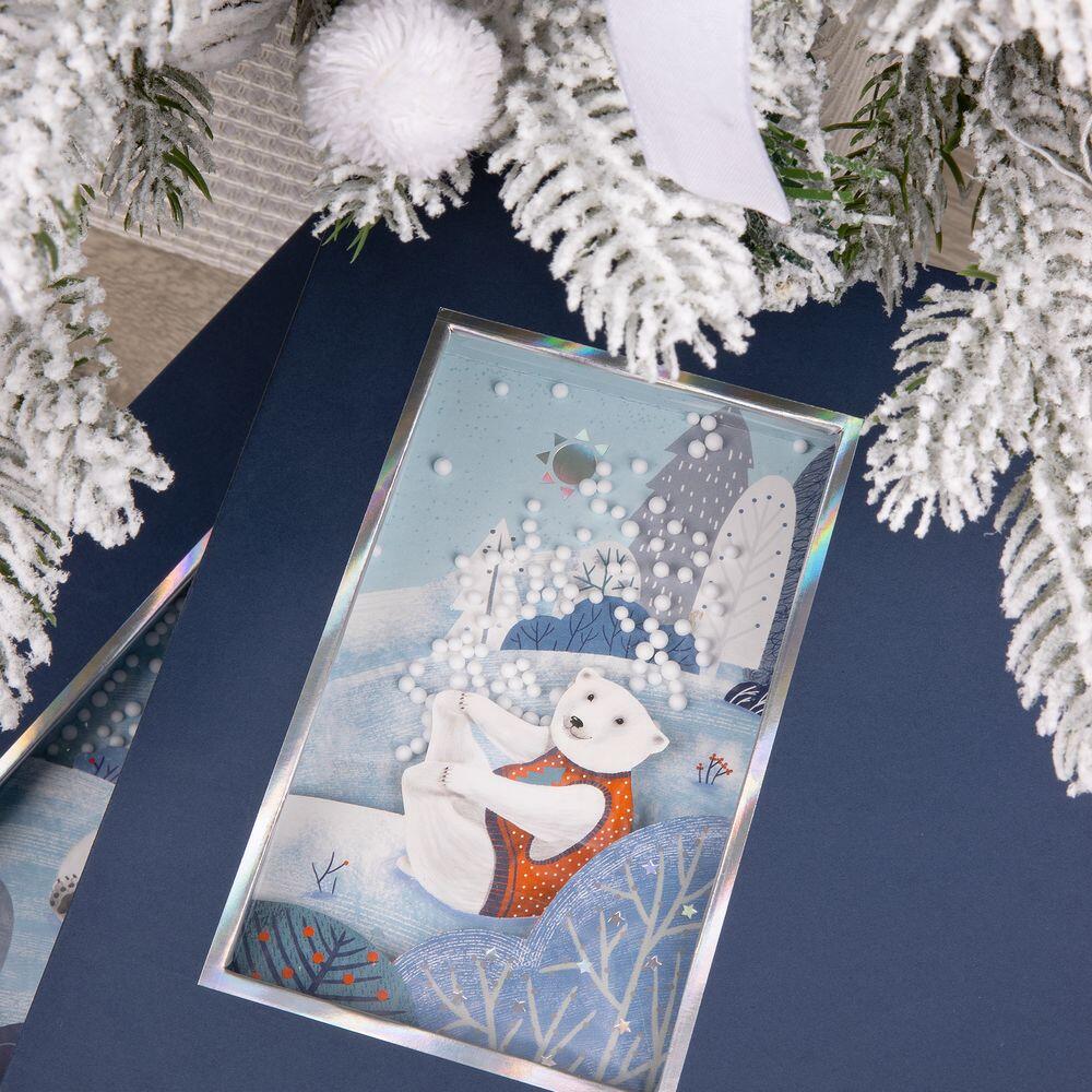 Элегантная коробка из переплетного картона The Blue Bear станет настоящим украшением зимних праздников. Ее главная изюминка — очаровательное окошко с 3D-иллюстрацией, которое словно приглашает в мир новогодних чудес.