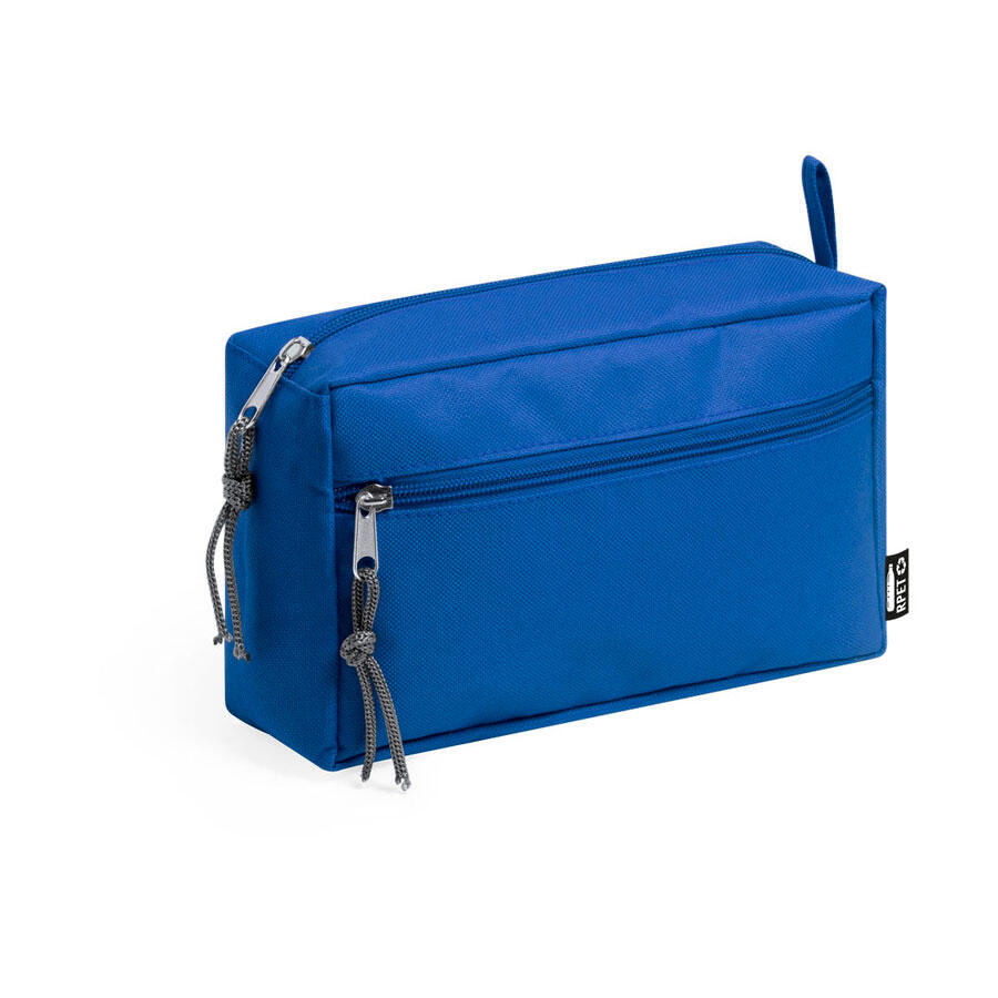 Косметическа из RPET материала. Основное отделение и передний карман с застежкой-молнией.