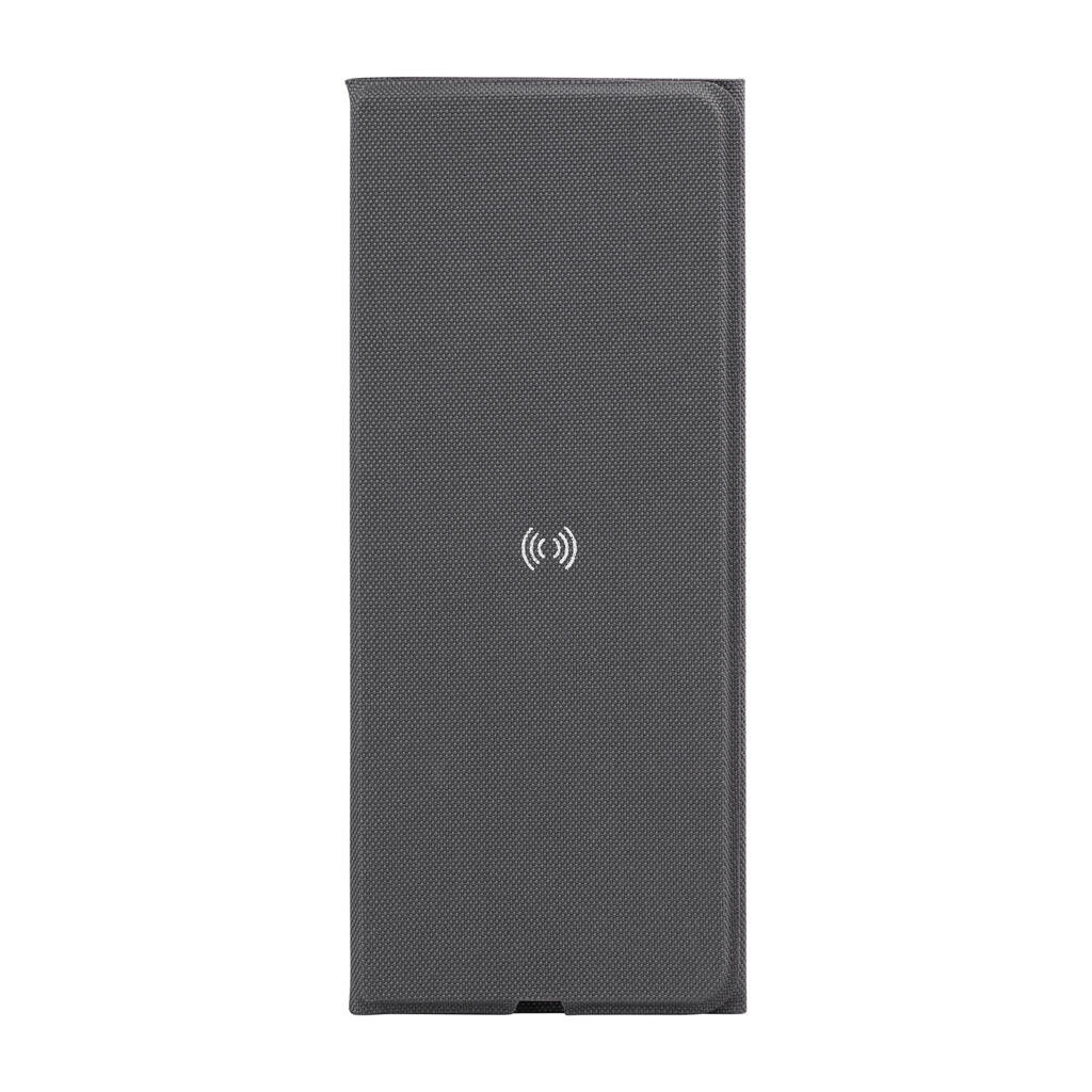 Именно для таких людей мы предлагаем современный настольный аксессуар – коврик-трансформер для мыши с функцией беспроводной зарядки, изготовленный из переработанного пластика (RPET). Коврик легко трансформируется в настольную подставку для более удобного просмотра фото/видео на экране смартфона (функция беспроводной зарядки сохраняется).