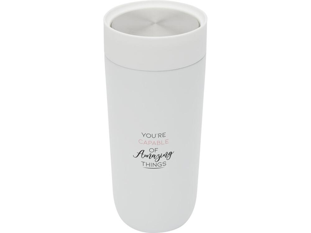 Премиальная кружка для питья находу с удобным механизмом открывания из нержавеющей стали, позволяющим открывать его одной рукой. Корпус из нержавеющей стали, сертифицированной согласно RCS, с прочным порошковым покрытием. Крышка изготовлена из сертифицированной согласно RCS нержавеющей стали и пластика РР. Медное покрытие и керамическое внутреннее покрытие. Подходит для большинства стандартных автомобильных подстаканников. Сохраняет напитки горячими в течение 12 часов или холодными в течение 24 часов. Поставляется в подарочной коробке из переработанного картона. Объем: 350 мл. RCS certified recycled stainless steel. упаковка FSC Mix Credit P5.1 CU-COC-877277.