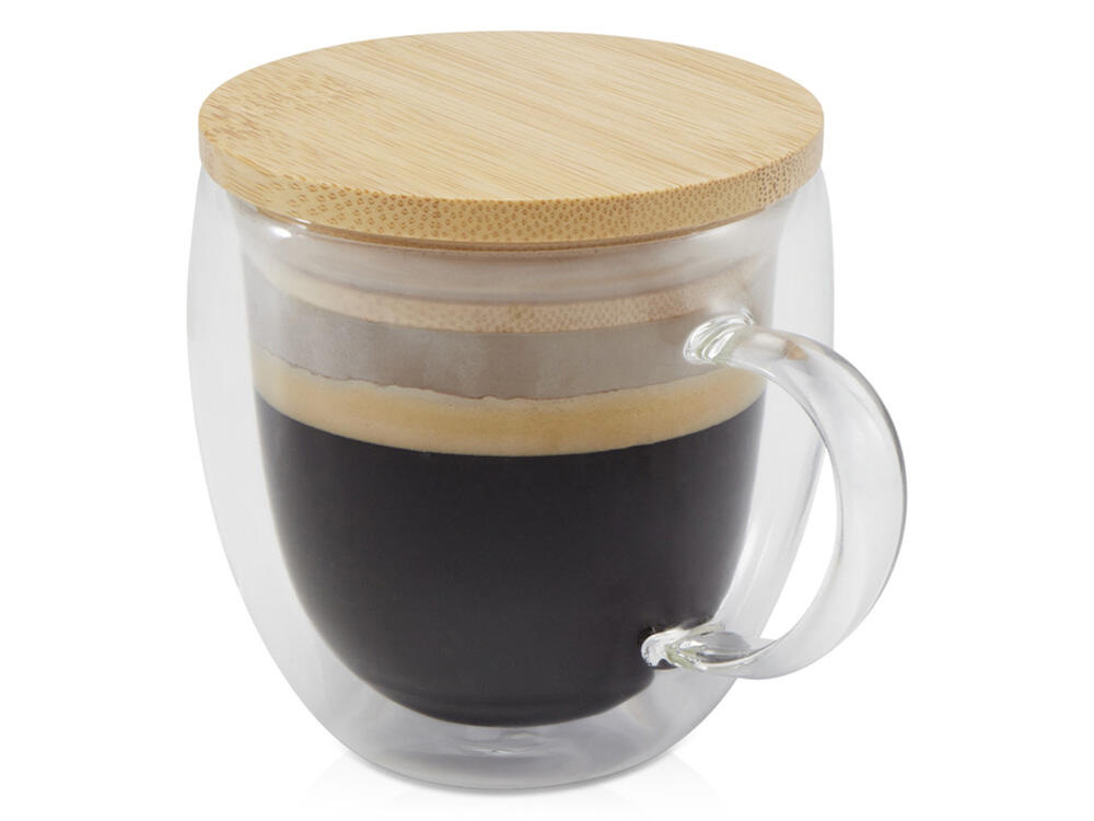 Стеклянная кружка Lenora объёмом 250 мл с двойными стенками и стильной бамбуковой крышкой. Она дольше сохраняет температуру напитка, помогает избежать проливов и бережно удерживает его аромат. Идеальный выбор для уютного чаепития или кофе-паузы.