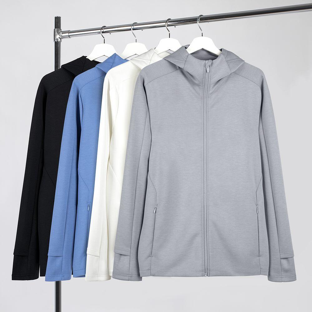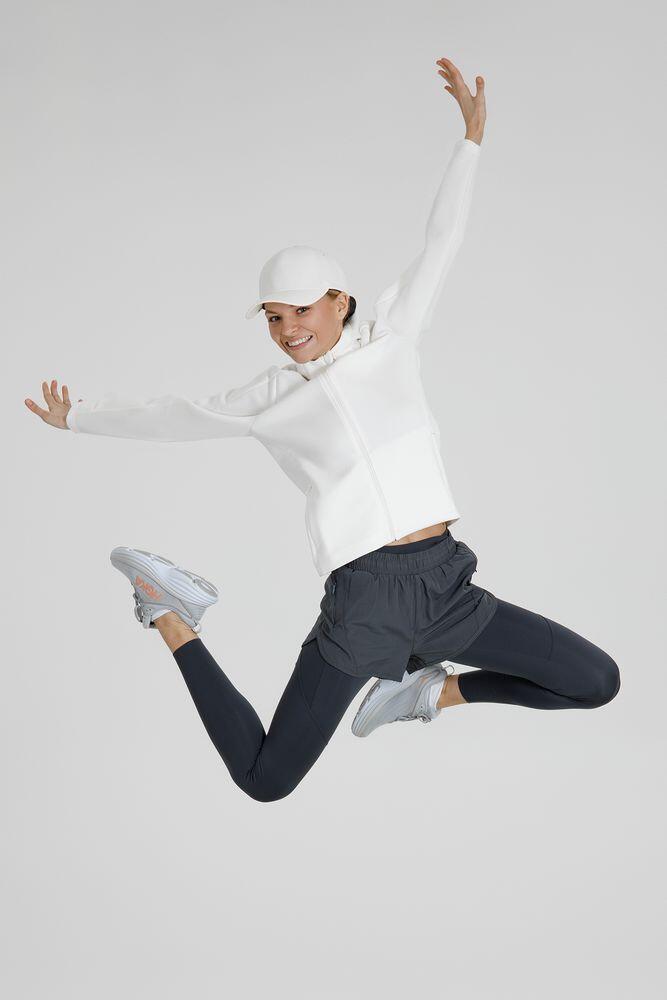 Такой «сэндвич» хорошо держит форму (а еще приятно пружинит под пальцами), но при этом остается легким и эластичным, не сковывает движений и отводит лишнюю влагу. Внутренняя ячеистая структура не препятствует воздушному обмену, позволяя коже «дышать», — а значит, больше никакого «эффекта парника» во время тренировки или активной прогулки.