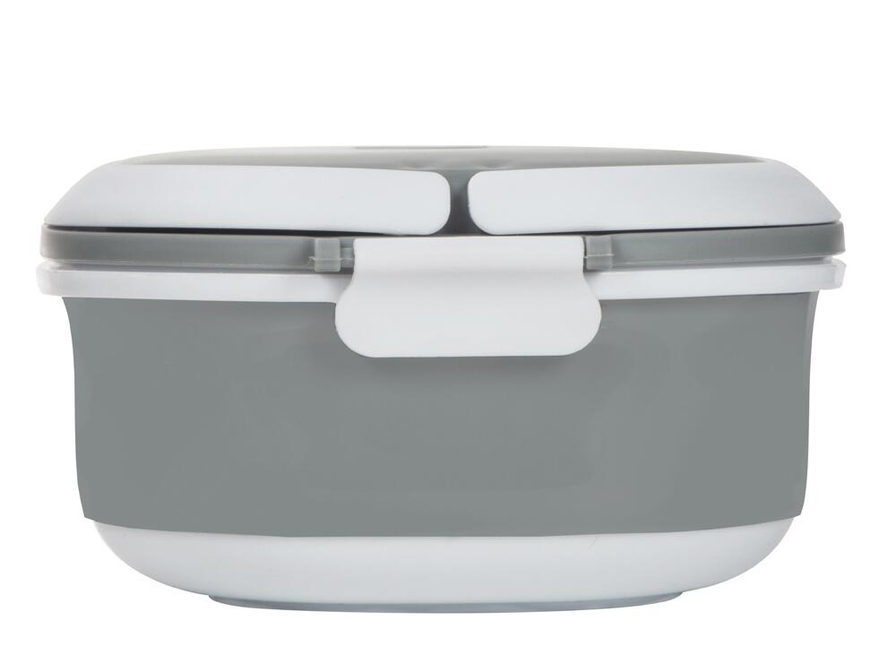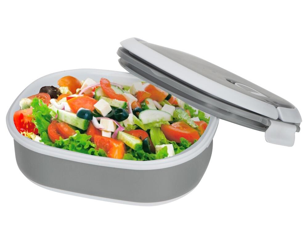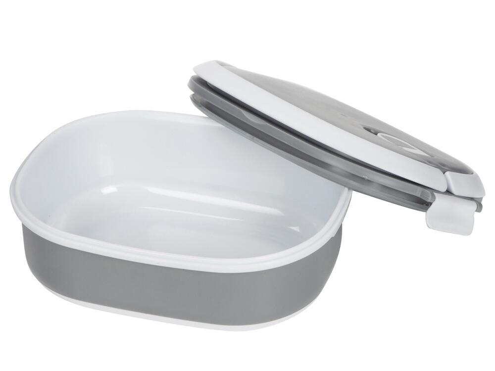 Материалы — пластик и термопластичная резина, безопасные для контакта с пищей и рассчитанные на длительное использование. Ланч-бокс плотно закрывается, что помогает избежать проливаний, однако не является полностью герметичным — идеально для твёрдых и густых блюд.