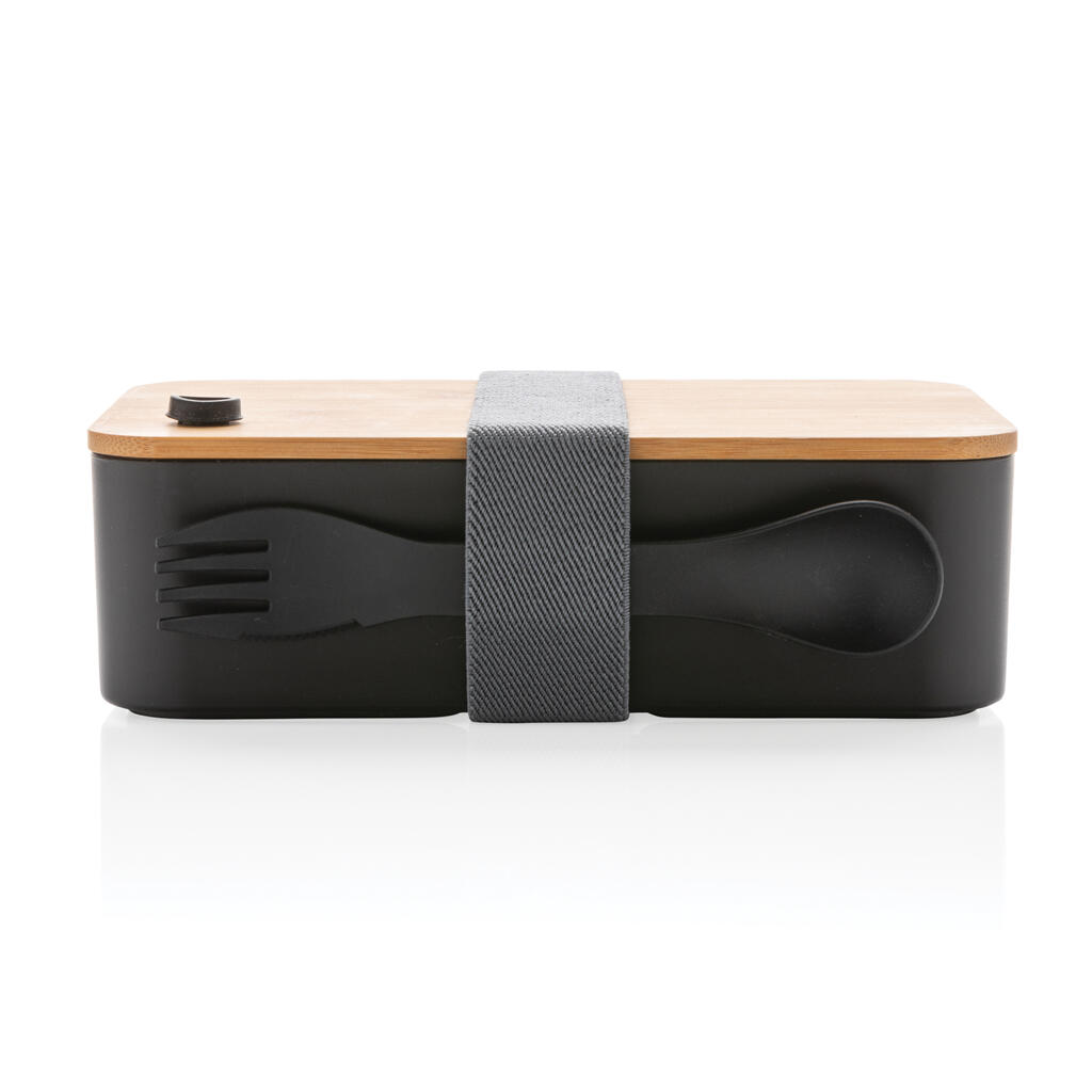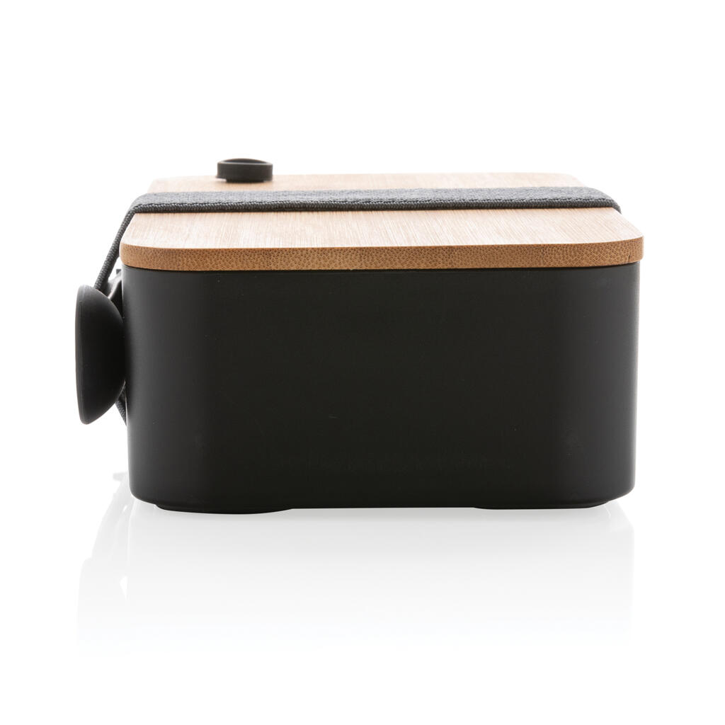С этим стильным ланч-боксом из переработанного полипропилена, сертифицированного RCS, вы не останетесь без обеда или перекуса на работе или на пикнике, на прогулке или в поездке. Ланч-бокс состоит из двух отделений, которые можно регулировать съемной перегородкой. На бамбуковой крышке есть отверстие для вывода пара. В комплект входят эластичный ремешок из rPET и ложка-вилка. Объем ланч-бокса — 1,4 литра. Упаковано в крафтовую коробку, сертифицированную FSC® mix. Количество переработанных материалов, которые использовались при создании ланч-бокса, составляет 44% от общего веса изделия. Сертификация RCS обеспечивает полный контроль цепочки поставок вторичных материалов.