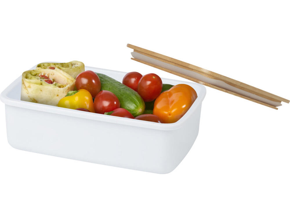 Пищевой контейнер Mangi изготовлен из переработанного пластика и имеет емкость 500 мл. Он оснащен бамбуковой крышкой и эластичной лентой, которая удерживает крышку на месте, гарантируя, что содержимое останется свежим. GRS certified recycled plastic, FSC certified bamboo.