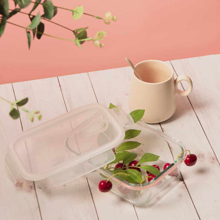 Ланч-бокс из боросиликатного стекла с пластиковой крышкой.