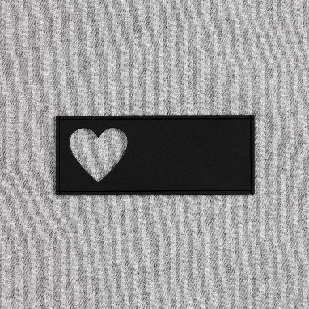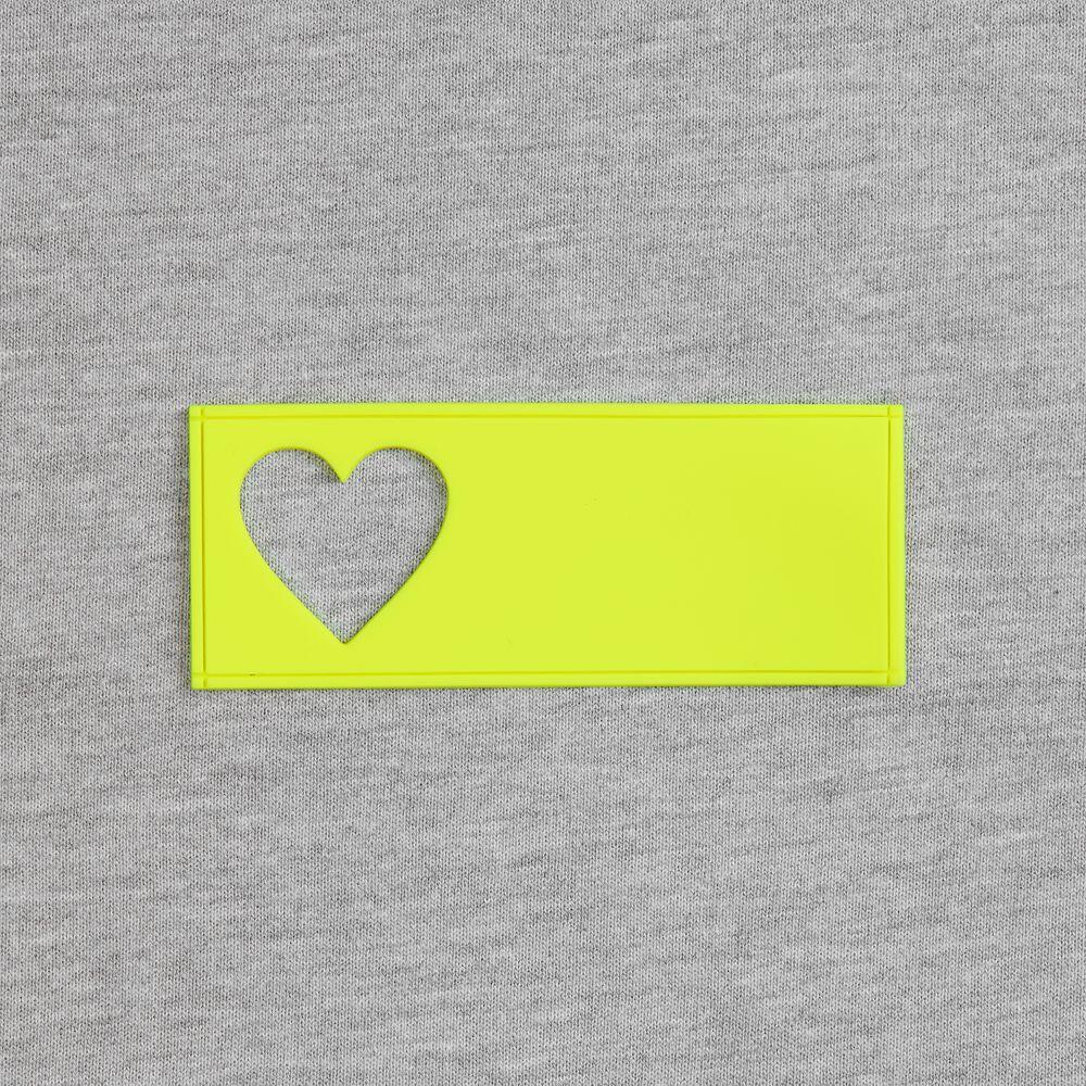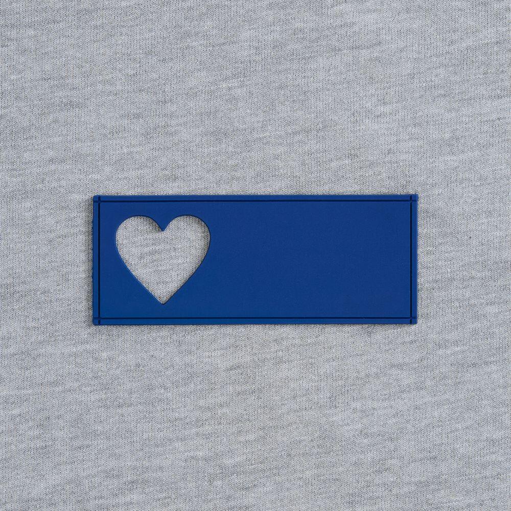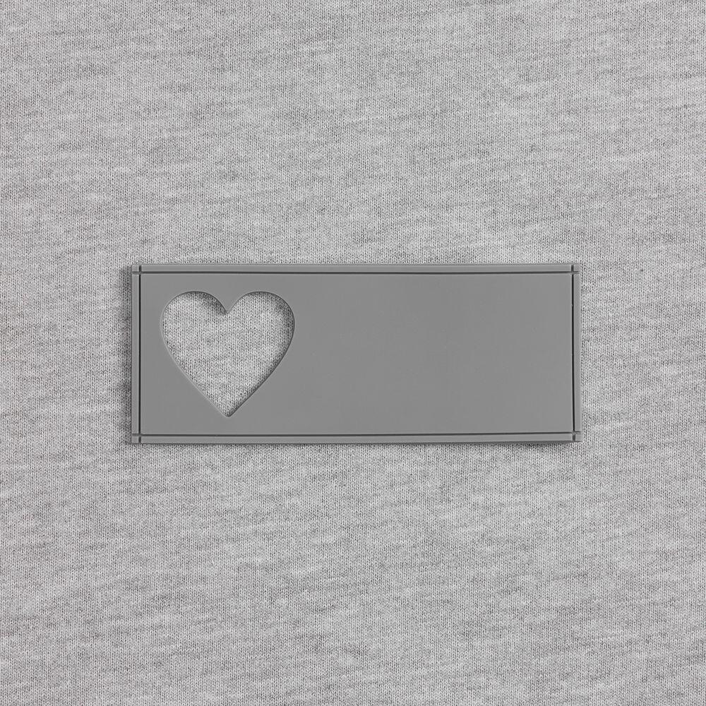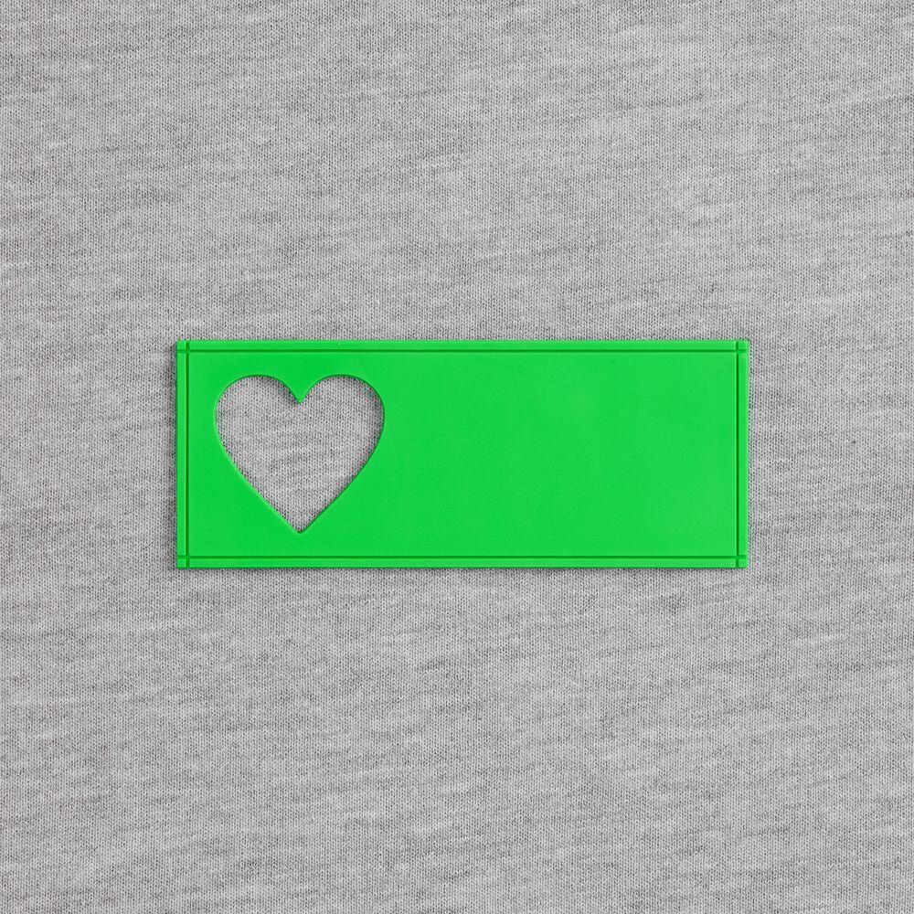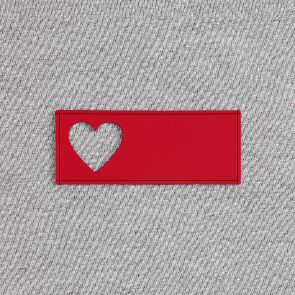 сделать нанесение на изделии, поверх которого нашить лейбл так, чтобы вырубка стала частью целостного и уникального дизайна.