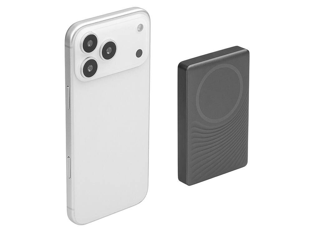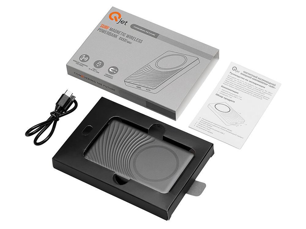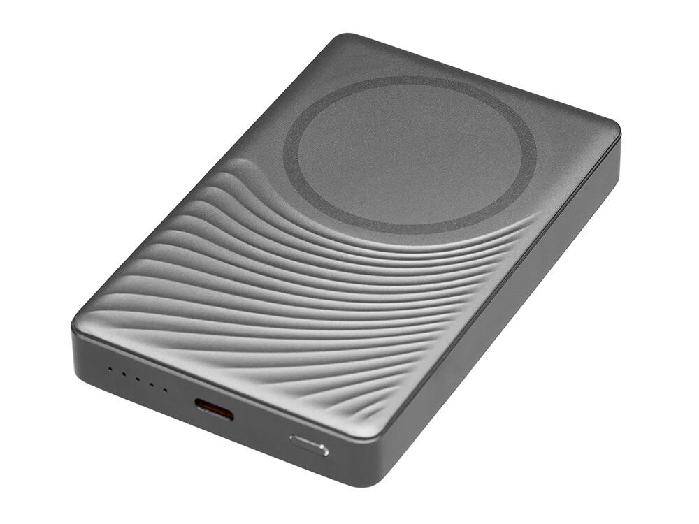 Магнитный внешний аккумулятор «Сёрф» – это идеальное решение для тех, кто ценит сочетание инноваций, надежности и безупречного дизайна. «Сёрф» не только технологичный гаджет, но и стильный аксессуар. Уникальная текстура на передней панели из прочного АБС-пластика и металлический корпус создают ощущение премиальности. Каждая линия подчеркивает современный подход к деталям – ваш логотип станет неотъемлемой частью этого шедевра. Сильные магниты обеспечивают мгновенное и стабильное прикрепление к iPhone и чехлам с магнитным кольцом (MagSafe).
