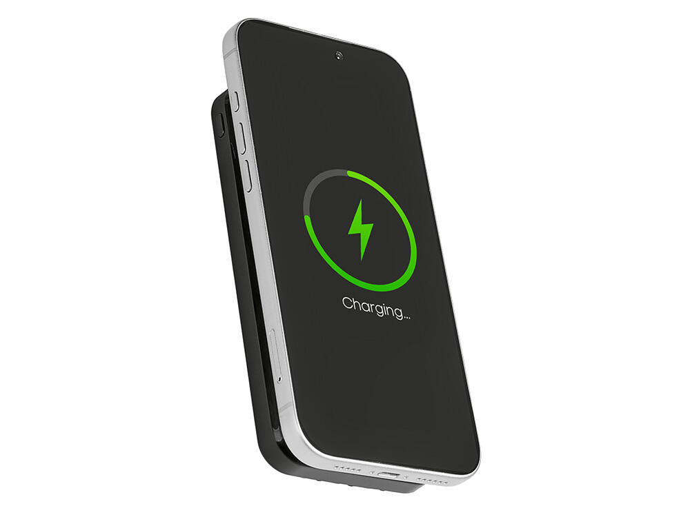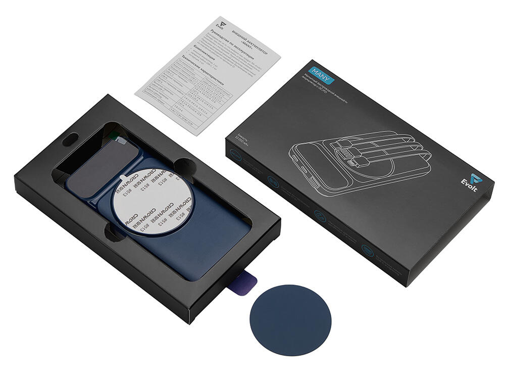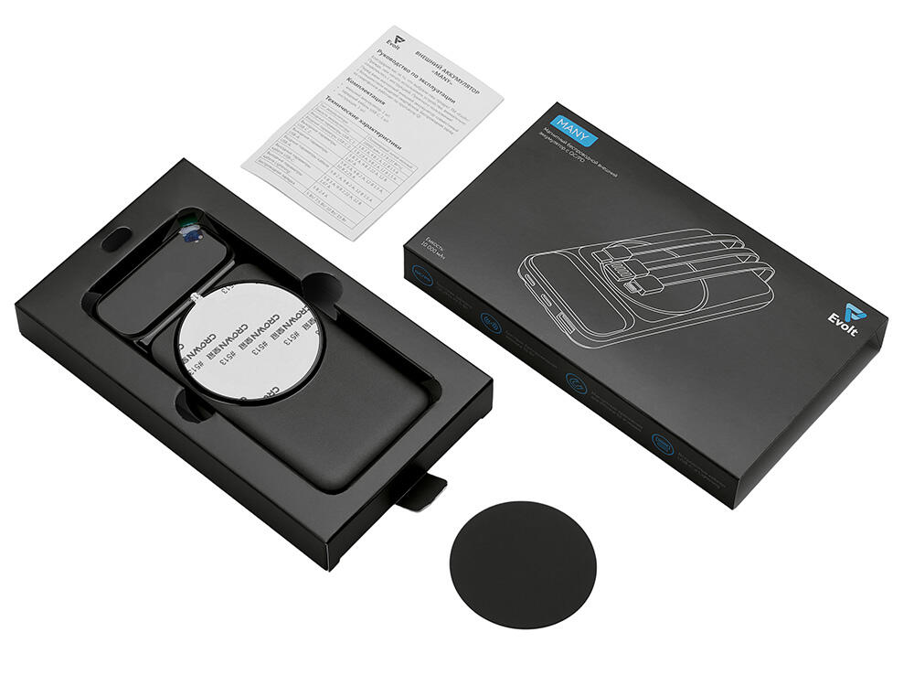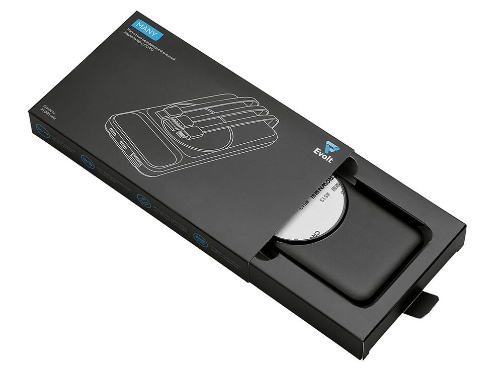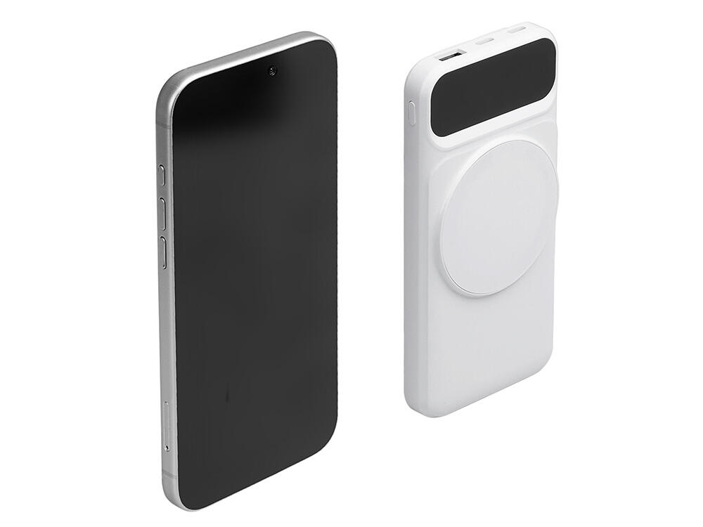 Функциональный и удобный внешний аккумулятор на 10 000 мАч обеспечивает быструю зарядку как по кабелям, так и беспроводным способом, поддерживая современные стандарты скорости. Цифровой дисплей на верхней панели мгновенно показывает точный уровень заряда, а встроенные кабели Lightning, USB-C и входной USB-A устраняют необходимость в дополнительных проводах — всё, что нужно для каждодневного использования, уже есть в самом гаджете. Компактные габариты, сопоставимые с размером смартфона, делают устройство идеальным для путешествий и повседневного использования. Сильные магниты гарантируют надёжное крепление при беспроводной зарядке. В комплекте есть силиконовая накладка: перед использованием удалите защитный стикер и прикрепите её к корпусу.