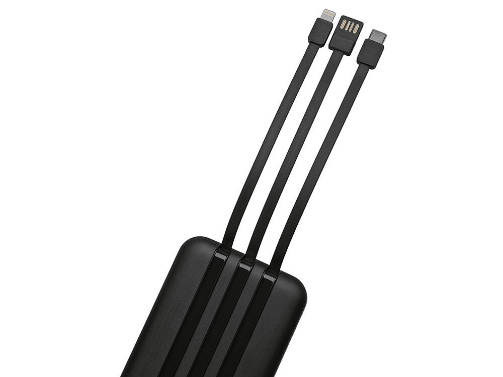 - Встроенные кабели (Lightning, USB-C, USB-A) — не нужно искать дополнительные кабели: зарядка других устройств и подзарядка аккумулятора происходят через встроенные кабели.