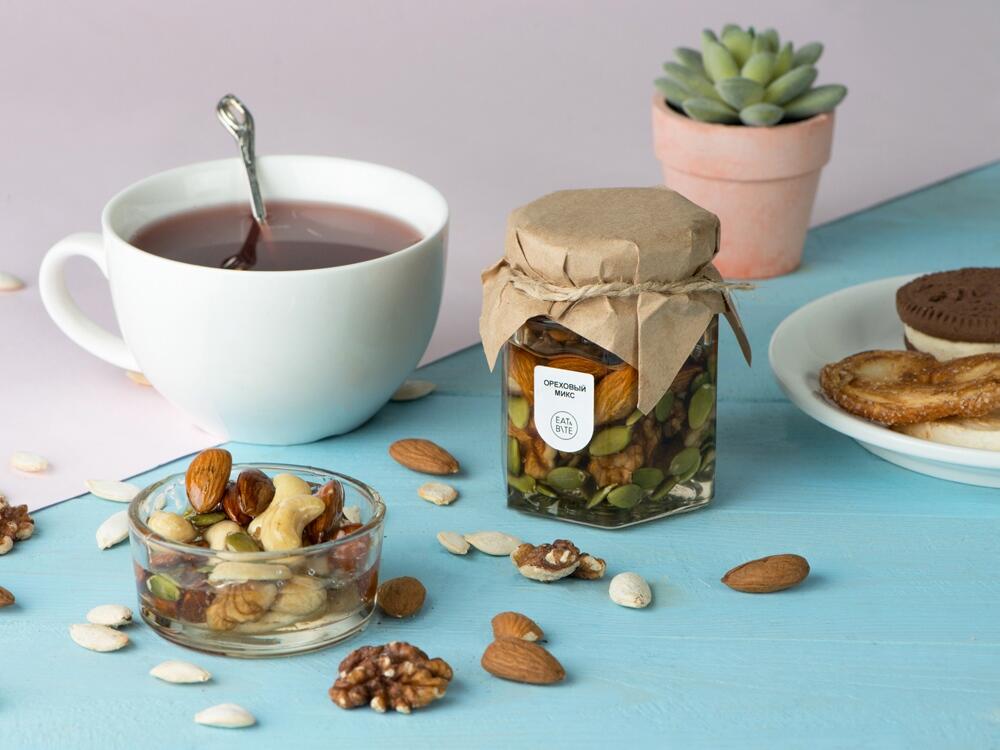 Грецкие орехи, миндаль, кешью и тыквенные семечки в натуральном мёде станут отличным дополнением к любому чаепитию.