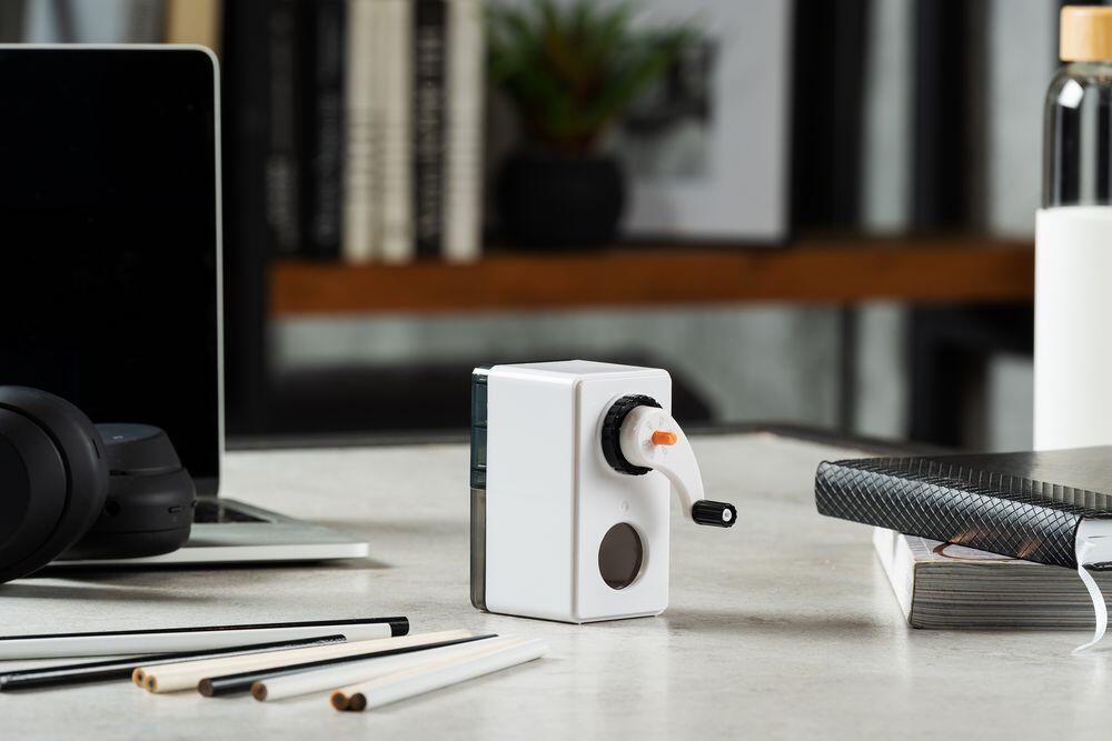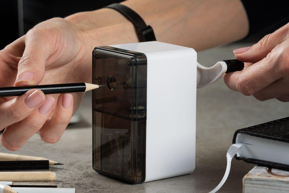 С механической точилкой Griffel каждый сможет без усилий заточить карандаши! Вращающийся роликовый нож обеспечивает быструю и острую заточку карандашей диаметром до 8 мм. Точилка оснащена переключателем степеней заточки, что позволяет качественно заточить как цветные (с более тупым углом заточки), так и чернографитные карандаши. Также точилка оборудована прозрачным контейнером для стружки — удобно контролировать уровень заполнения. Внутри контейнера предусмотрена дополнительная ручная точилка для карандашей большего диаметра.