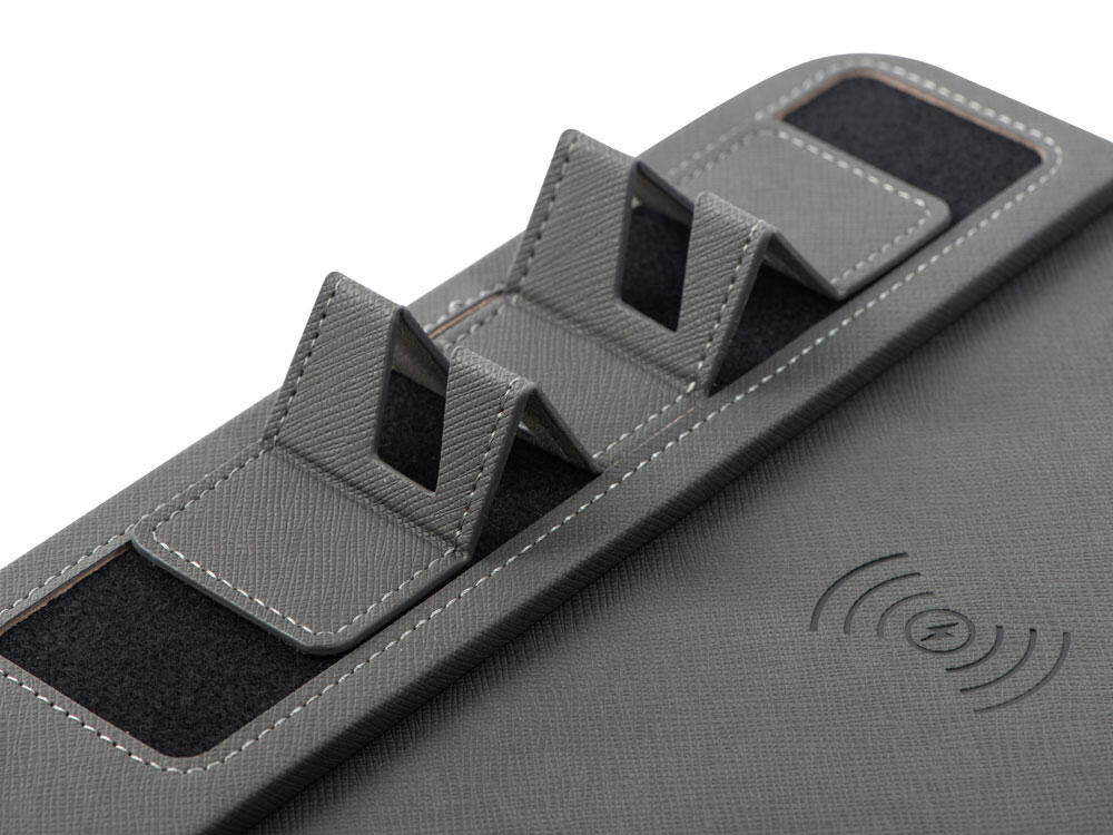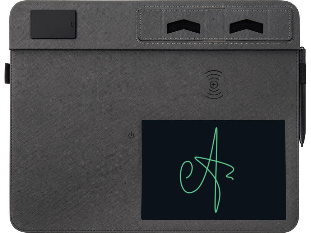 Настольный органайзер сочетает в себе сразу несколько устройств: беспроводное зарядное устройство, планшет со стилусом для заметок, подставку для смартфона и коврик для мышки. А еще нанесенное на Multi Pad лого подсвечивается!