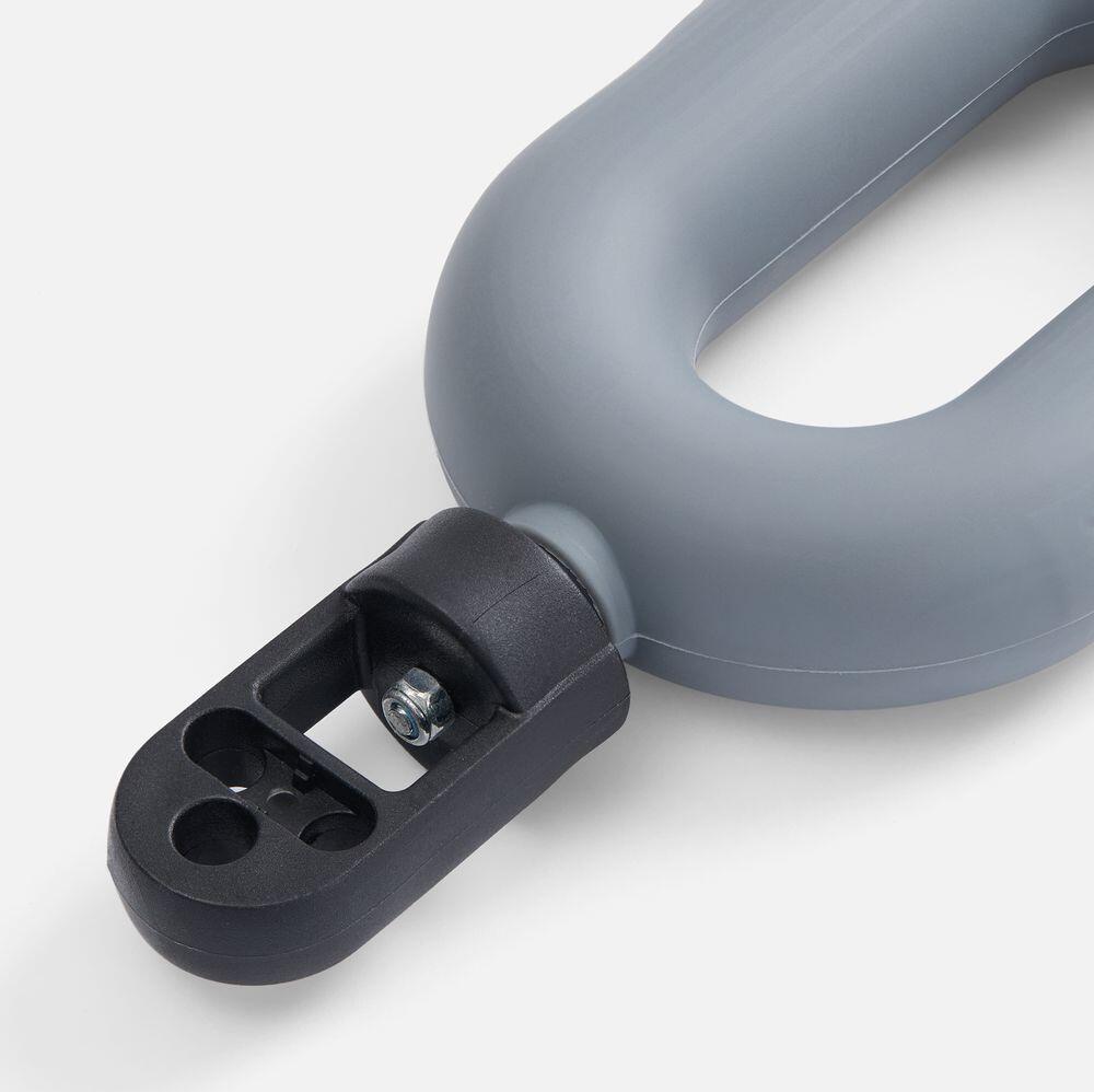 Шнур к ручкам-эспандерам крепится через пластиковый переходник с отверстиями для продевания шнура. Эспандеры выполнены из тактильно приятного силикона, обладающего высокой степенью эластичности и прочности, а широкий шнур (5 мм) — из плотного ПВХ.
