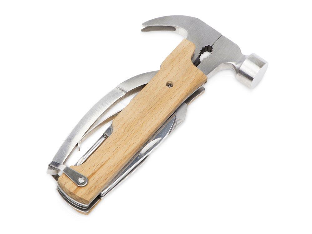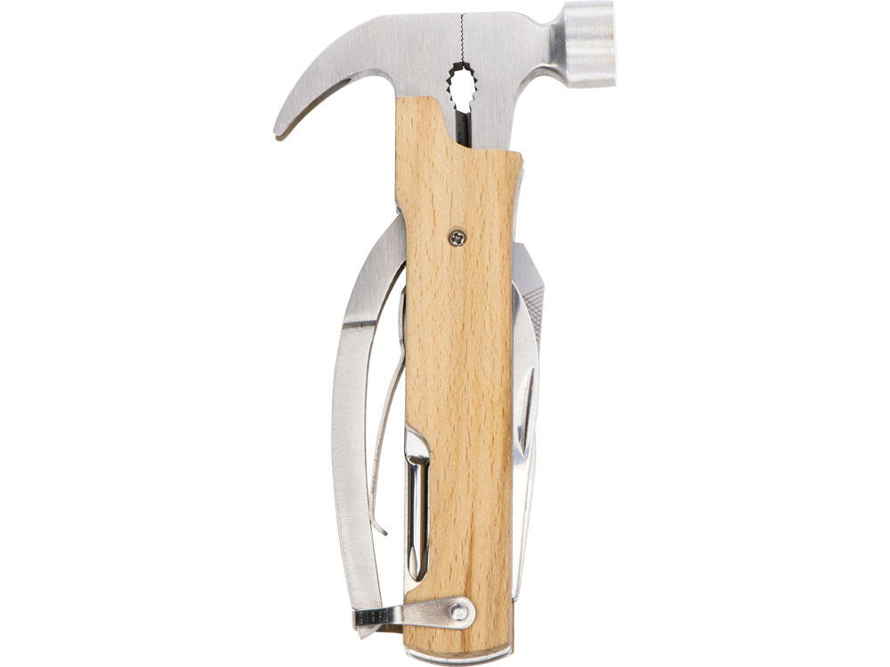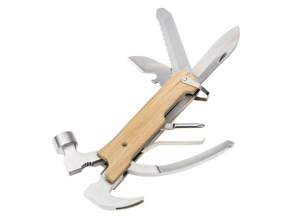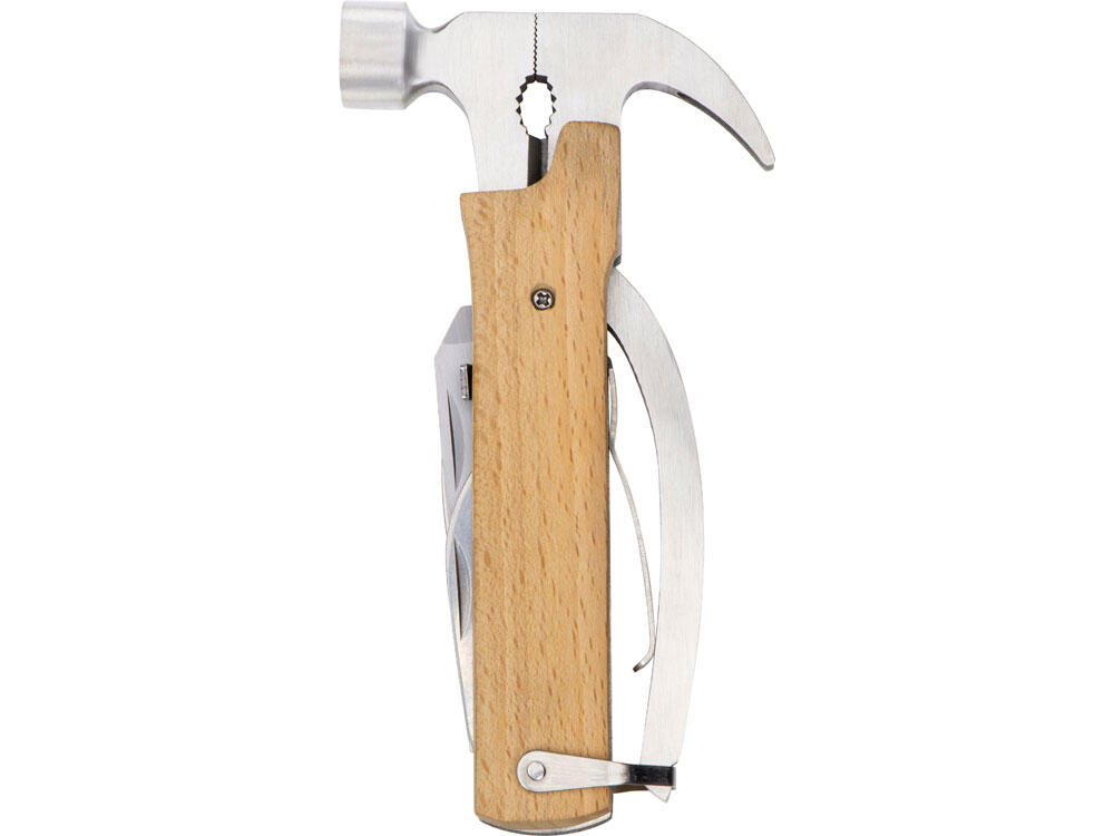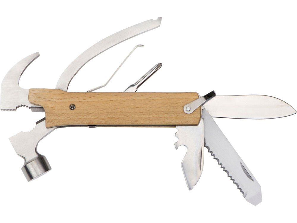 Многофункциональный инструмент, который выручит дома, на даче, в путешествии, походе и во множестве других ситуаций. Полностью сделан из металла и декорирован накладками из натурального дерева. Чехол в комплекте.