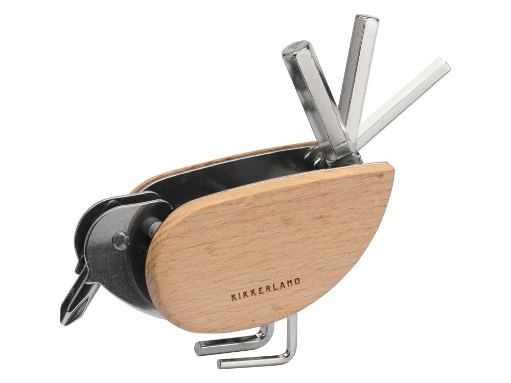 Очаровательный мультитул в виде птицы может показаться просто миленькой фигуркой, но пусть вас не смущает ее милый вид – на самом деле это многофункциональный инструмент 6-в-1! Клюв птички представляет собой крестовую отвертку из нержавеющей стали, ее ножки – это шестигранный шлиц на 3 и 2 мм, а хвостовые перья – шестигранники на 6, 5 и 4 мм, которые всегда готовы прийти вам на помощь. Бока птички – из букового дерева, их можно украсить логотипом при помощи гравировки, УФ-печати или тампопечати, чтобы украсить пернатое создание.