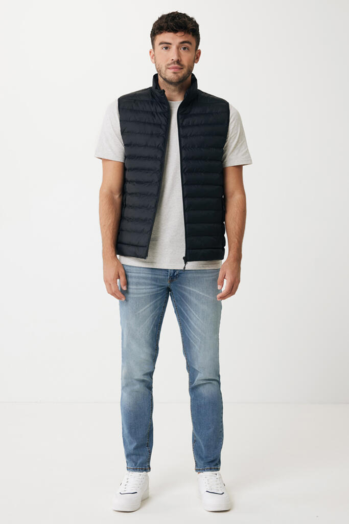 Стеганый жилет Meru согреет даже в самые холодные дни. Это экологичное решение: безрукавка на 100% изготовлена из переработанного полиэстера — в том числе, из него сделан и утеплитель. Жилет и карманы застегиваются на молнии со скрытой спиралью: это делает застежку водонепроницаемой. Пуллеры (собачки) молнии окрашены в тон жилету. Его можно носить как под основной курткой, так и в качестве верхней одежды осенью или весной. Ткань, из которой он изготовлен, успешно защищает от влаги благодаря водоотталкивающей пропитке. Тонкий, легкий, но теплый жилет подойдет для занятий спортом, прогулок и поездок. Плотность материала — 70 г/м². Сертифицировано OEKO-TEX® STANDARD 100. Сертифицировано AWARE™. Наличие индикаторных частиц AWARE™ подтверждает, что мы действительно используем переработанные материалы. 2% с продажи каждой вещи, отмеченной сертификатом AWARE™, мы перечисляем в поддержку всемирной организации Water.org.
