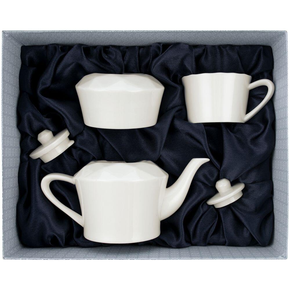 Размерчайник: 21,5х12х11,5 см; сахарница: диаметр 10,5 см, высота 8,5 см; блюдце: диаметр 16,2 см; чашка: диаметр 9,5 см, высота 6 см, упаковка: 33,7x26,6x14,6 см