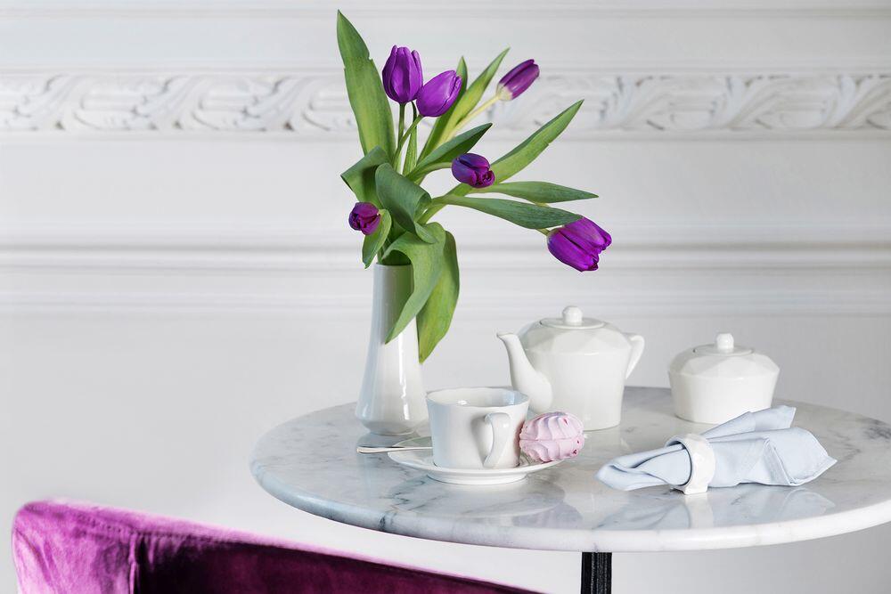 Линейка столовой посуды Diamante Bianco — настоящий бриллиант коллекции Altavolo. Структура и пропорции граней блюдца, чайника и сахарницы в точности повторяют верхнюю часть бриллианта классической огранки — корону. Присмотритесь — и вы увидите, как играет свет на молочно-белом фарфоре. В набор входит чайная пара (220 мл), чайник (600 мл) и сахарница.