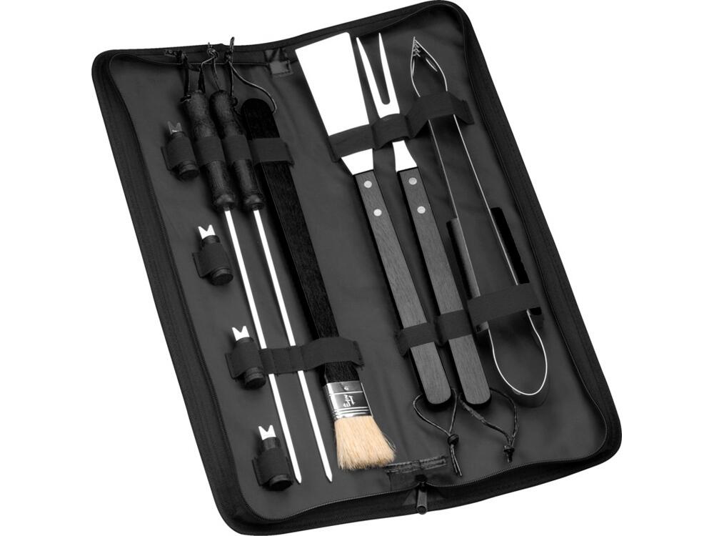 Набор для барбекю "Barabicu" из 10 предметов. Чехол с застежкой на молнии, передним открытым карманом и двумя ручками, включая лопатку, вилку, щипцы, 2 шампура, кухонную кисть и 4 держателя для кукурузы.
