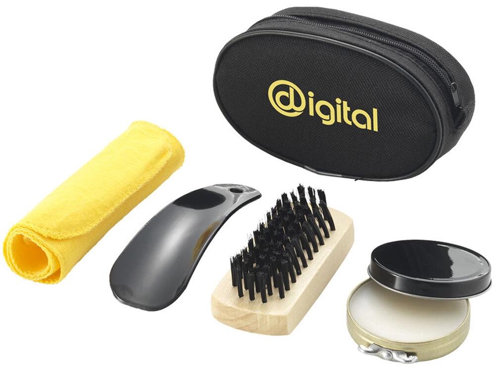 Набор для ухода за обувью - отличный подарок для тех, кто часто ездит в деловые поездки. В наборе такие необходимые аксессуары, как бесцветный крем для обуви, щетка, салфетка для полировки. Компактно упакованы в нетканый чехол, на который можно нанести изображение.