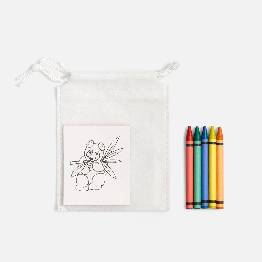 С помощью мелков ребенок легко сделает милых зверушек на листах-раскасках цветными и яркими. Сумочку можно оставить чистой, а можно напечатать заготовку для раскраски и позволить ребенку раскрыть свой творческий потенциал и на этом холсте. В комплекте 5 цветных восковых мелков и 20 листов с картинками для раскрашивания. Поставляется в индивидуальном полиэтиленовом пакете с липким краем.